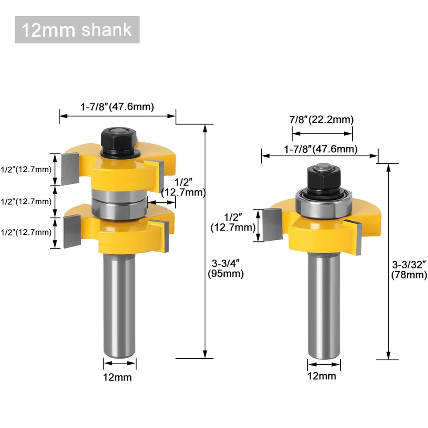 End Mills1-1/2inch 12mm 1/2 Shank Tongue And Groove Router Bit Set - Joint Assembly Router Bit Set 1-1/2inch Stock Wood Cutting Tool 1SetMaterial: Tungsten Cobalt Alloy,Crafted from Tungsten Cobalt Alloy for superior durability and precision in woodworking.12mm 1/2 Shank:Features a 12mm 1/2 shank for compatibility with a wide range of routers and drills.Complete Woodworking Tools Set:A comprehensive woodworking tools set, perfect for both novices and professionals.1-1/2" 2 Bit Set:Comes as a 1-1/2" 2 bit set, ideal for creating tongue and groove joints.1 inch Bull Nose Router Bit:Includes a 1 inch bull nose router bit for creating smooth, rounded edges on wood.Type : T-Slot Milling CuttersMaterial : Tungsten Cobalt Alloy