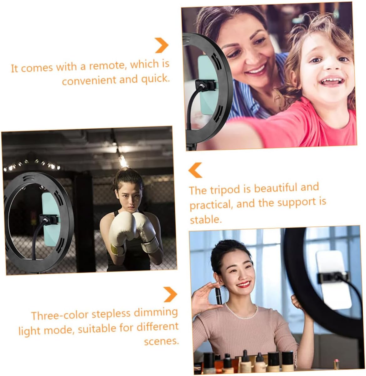 Package List 1 x fill light 1 x tripod head 1 x iron stand 1 x shutter Characteristics -Light Source Power: 8-10W phone stand for recording. -Material: Plastic, Iron. -Light Source Type: 2835 LED mobile phone tripod stand. -Size: About 39.00X25.50X18.00cm/ 15.33X10.02X7.07in. -Voltage: 5V selfie tripod. -Color: Black. -Product Info:Fill light bracket -Color Temperature: 3000-6500K. - Professional fill light makes photography easier selfie light for phone. - Made of materials, safe and . - Place the phone firmly and will not fall off phone stand for filming. - Multifunctional design, can brighten skin, beautify face, etc phone holder for recording. - Suitable for live broadcasting, photography, , etc mobile phone holder.Goods Descriptionphone holder USB power supply, multi-functional integrated molding, such as beauty, skin brightening, light supplement, etc.phone stand for recording This fill light has a three-color dimming light mode, suitable for different scenes.live mobile phone bracket The tripod is beautiful and practical and stable