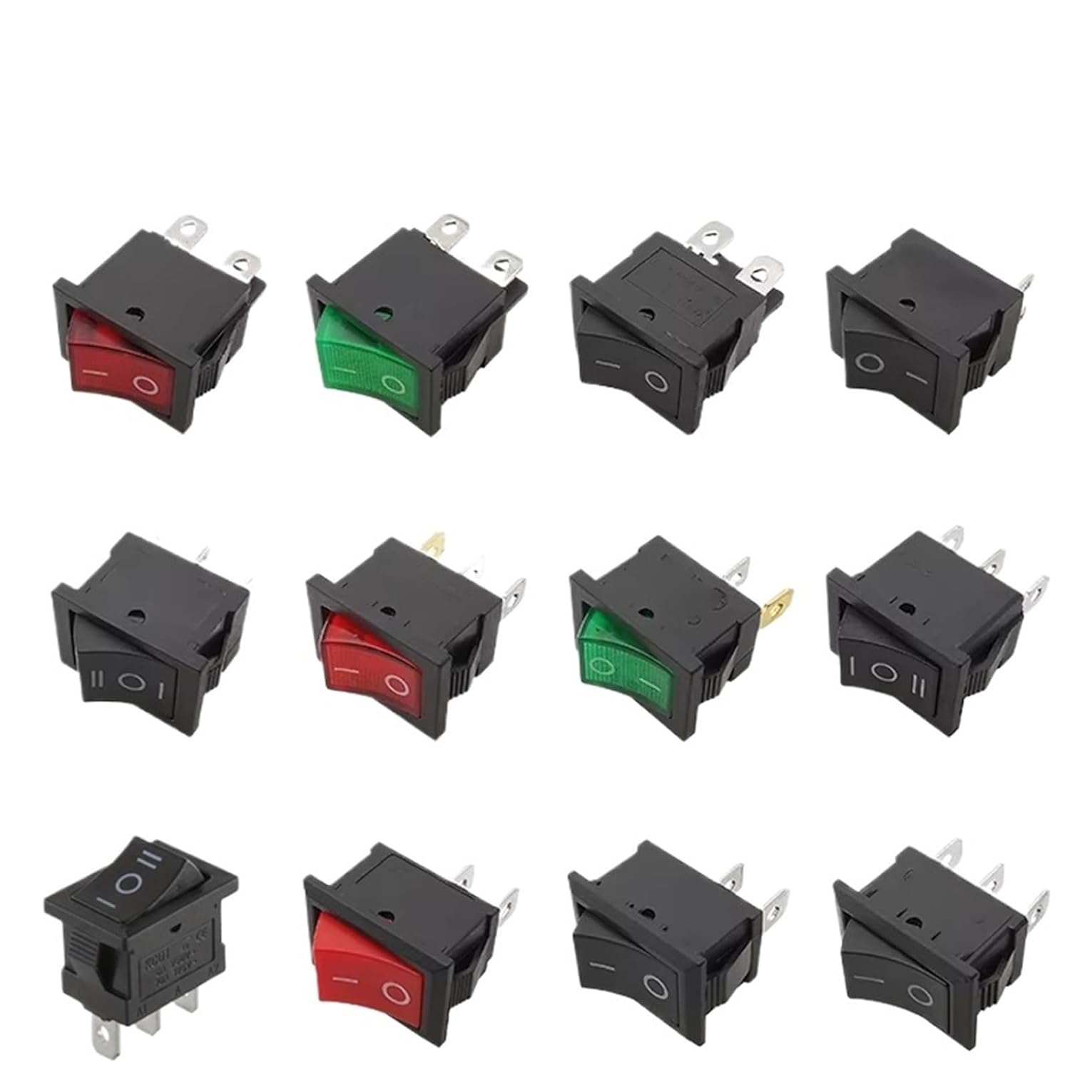 Pushbutton Switches100PCS KCD1 Series 2/3/4 Pin ON-OFF Boat Car Rocker Position Power Switches 15mm x 21mm Black Red Green 6A/250V 10A/125V AC==========Hign-concerned Chemical : NoneMaterial : PlasticSwitch Type : Rocker SwitchModel Number : KCD1Item Type : SWITCHESOrigin : Features : 2PIN 3PIN 4PINSwitch Type : Rocker Switch