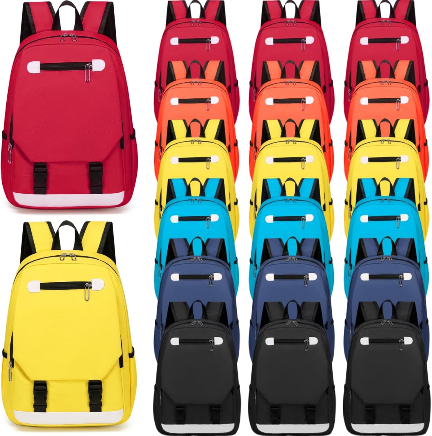 Features: Classic Design: The backpack bulk in classic pure color design is sure to remain in style, 6 different fashion colors available for boys and girls, they will like these back packs and share with friends and classmates. Charity Donations: The bundle of backpacks can meet businesses or non profit groups' needs conveniently for its rich quantity, such as charities, churches, schools, or government agencies, and suitable for school supplies bulk purchases. Specifications: Material: Oxford cloth and polyester Size: 16''H x 12''W x 4.7''D/ 40.6 x 30.5 x 12 cm Color: red, orange, yellow, black, blue, navy Package includes: 12 x Backpacks for kids Notes: Manual measurement, please allow slight errors on size. The color may exist a slight difference due to different screen displays.