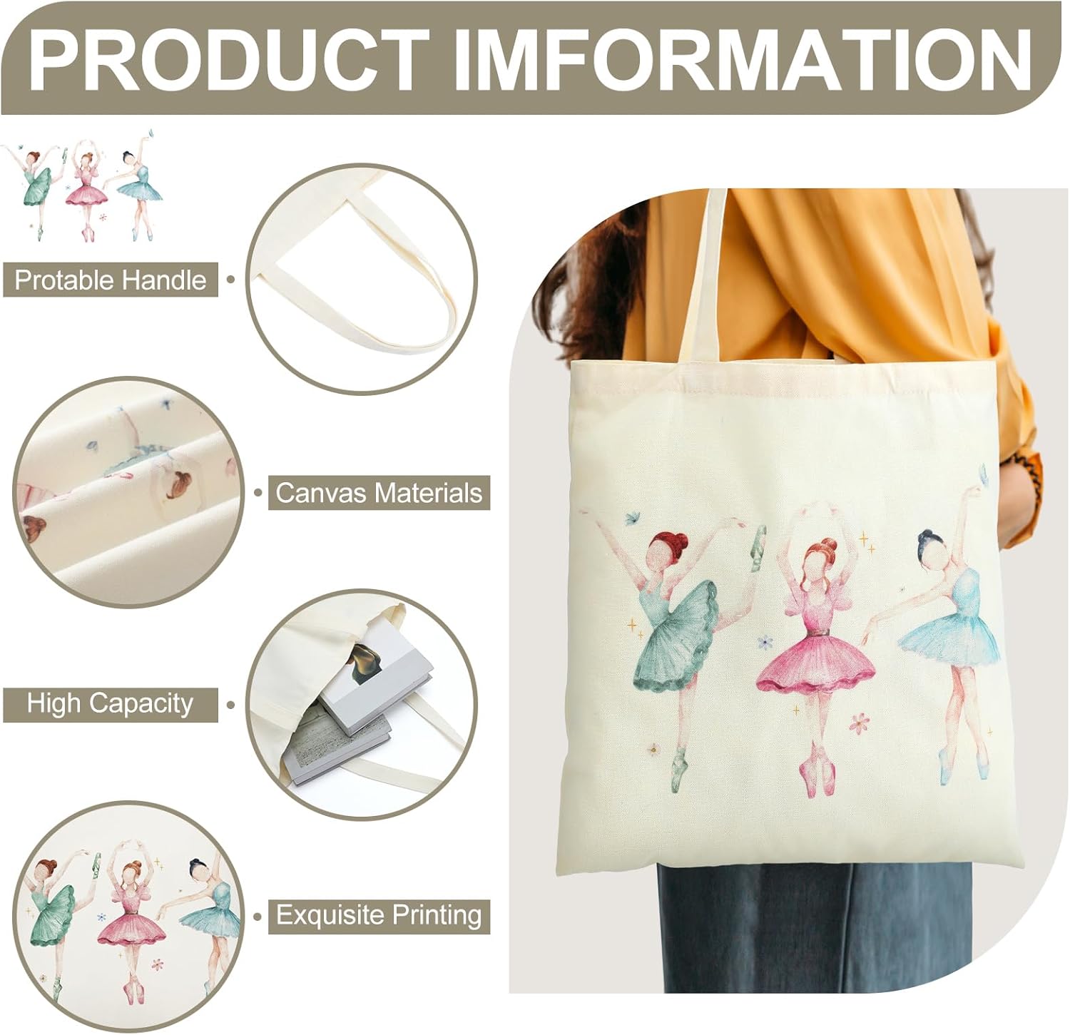 Features: Ideal Gift for Ballet Lovers: this Ballerina Canvas Tote Bag is a thoughtful and unique gift for anyone who loves ballet. Suitable for birthdays, holidays or any special occasion Easy to carry: foldable for easy storage. The right size can meet your storage needs for various items, such as candies, snacks, gifts, biscuits, etc. Specifications: Material: canvas Color: multi-color Size: 15.7 x 15 inches / 40 x 38 cm (H x L) Package Includes: 12 x Ballerina Canvas Tote Bags Notes: Due to manual measurement, there may be slight errors in size. Due to different screen displays, there may be slight differences in color.