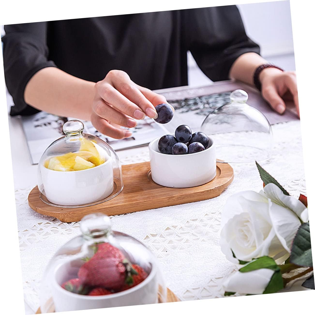 Package Include 2 x bowls 2 x covers 1 x tray Characteristics - Material: Wood + glass + ceramics Salad Bowl. - Size: 25.00X12.00X8.50cm/9.82X4.72X3.34in Ceramics Bowl. - Color: Assorted color Fruit Bowl. - You could send it to your friends and families as a present and they will be very for Dessert. - It can be used as a food bowl wonderfully, which can increase your appetite well Dessert Bowl. - Made of great material, it's and for use. Food Serving Bowls - Gorgeous ceramics bowl, it is fit for home, hotel, restaurant and so on Ceramics Dessert Bowl. - Delicate workmanship makes the bowl's surface very smooth, and it's easy to wash with water. Food Serving BowlGoods DescriptionFood Serving Bowls It is made of high-grade material, which can be used for a long time.Fruit Bowl Stylish ceramics bowl, it is very for restaurant, home, hotel and so on.Bowl for Dessert manufacture makes its surface smooth, and it is easy to clean with water