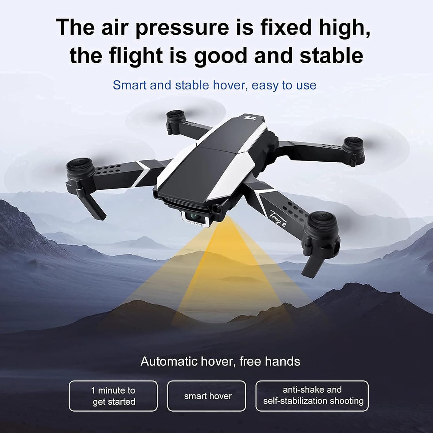 2 Batteries RC 4K Drone Dual HD Camera WiFi Aerial Photography Foldable Quadcopter with Headless Mode Hand Gesture Photographing Steady Hover Gravity Sensor Headless Mode with Storage