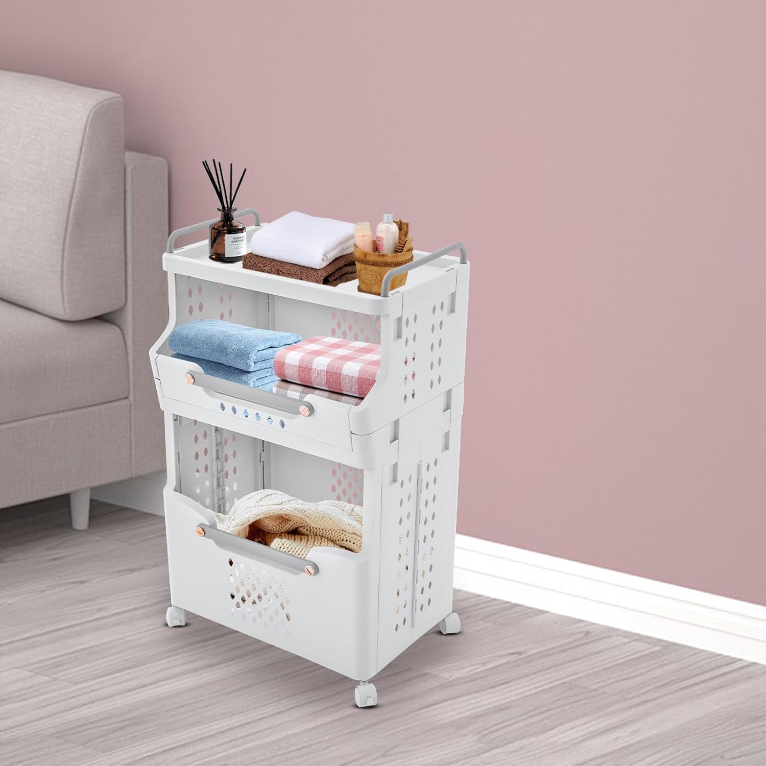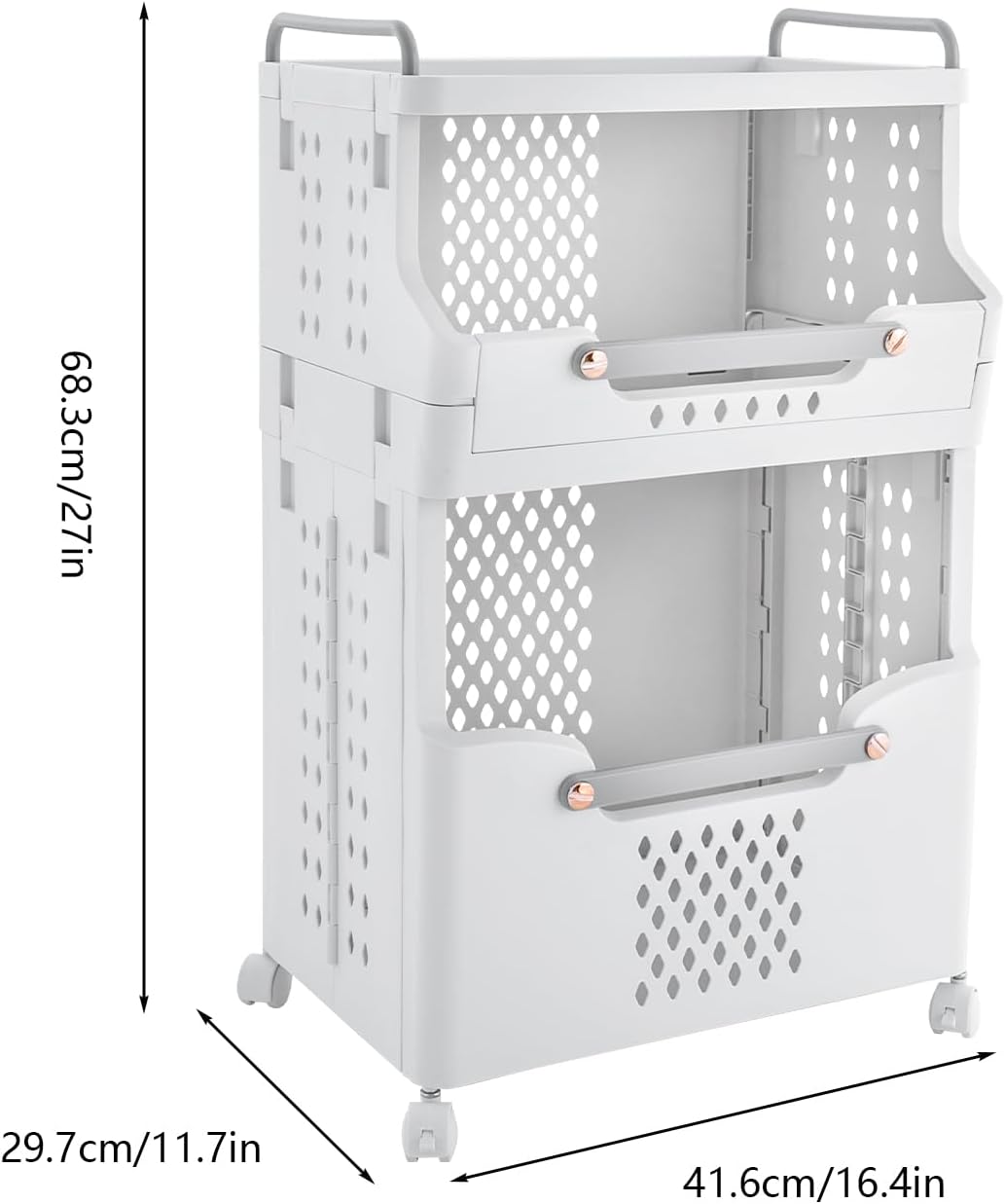 Description:Are you still troubled by dirty clothes storage at home? Take a look at our laundry cabinet. It adopts a double-layer design, which can accommodate a large amount of clothing. The universal wheel design allows you to easily move it to different places. Don't hesitate, come and make your life more relaxed and healthier!Application:This product is suitable for families, living rooms, bedrooms, study rooms, children's rooms, bathrooms, bathrooms, laundry rooms, laundry rooms, dressing rooms, offices, changing rooms, hotels, hospitals, supermarkets, etc. It can be used to store dirty clothes, cosmetics, toys, dog food, snacks, books, or other items.Specification:Material: PPProcess: Injection MoldingColor: WhiteStyle: ModernShape: RectangularAssembly Requirement: YesMount Type: Floor-MountedWheel Type: 4 * Universal Wheels(2 with Brakes)Each Tier Capacity: Approx. 50L/13.21gal, 20L/5.28galProduct Size: 41.6*29.7*68.3cm/16.4*11.7*27inPackage Size: 41*37.5*17cm/16.14*14.76*6.69inGross Weight: 2.44kg/5.38lbsNet Weight: 2kg/4.41lbsPackage Included:1 * Laundry Cabinet4 * Wheels1 * Chinese Assembly Diagram