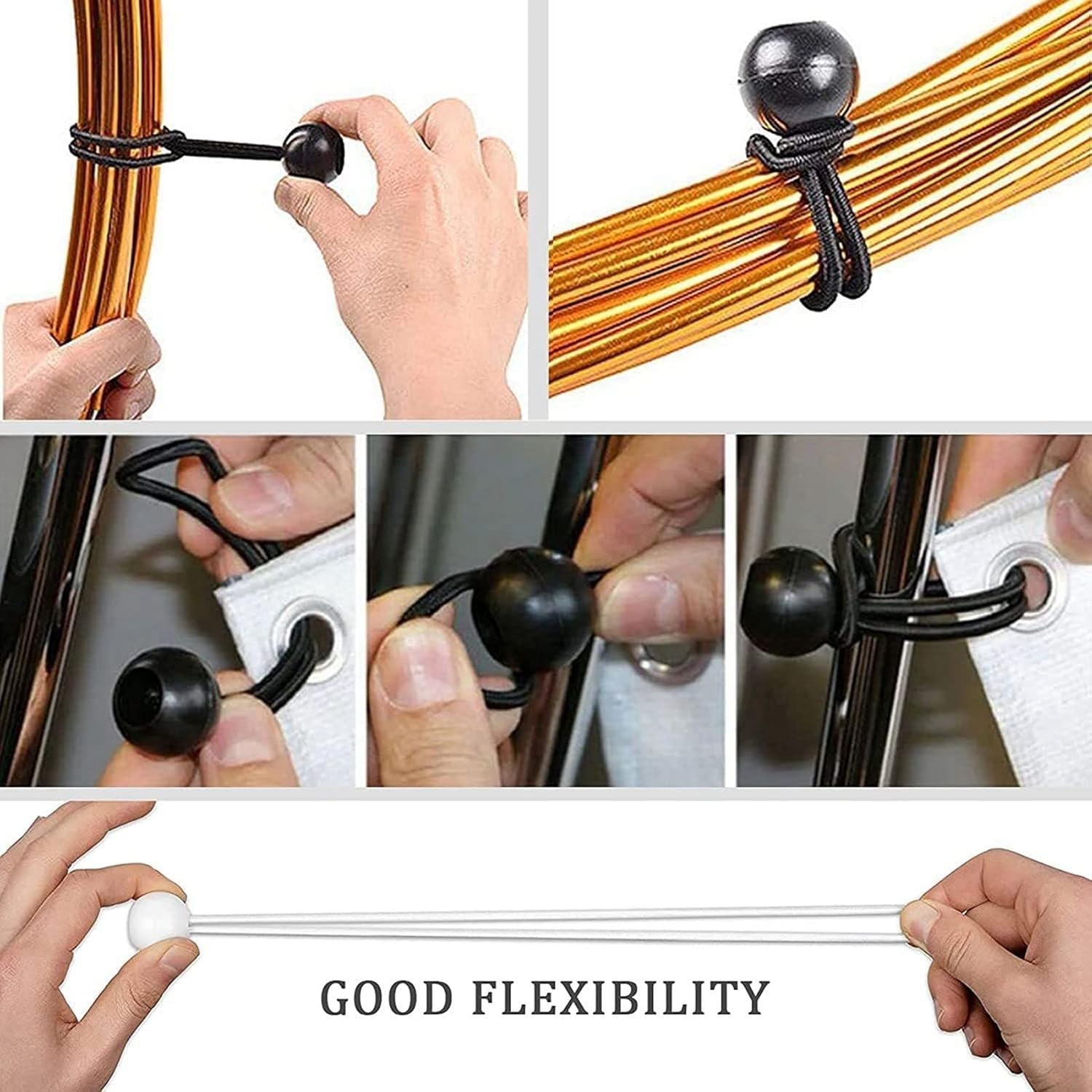 Pomojonbi 200 Pcs Bungee Cord with Balls Elastic Ties Bungee Toggles Ties for Marquees,Tents Banners,Flag Poles,Tarp (White)