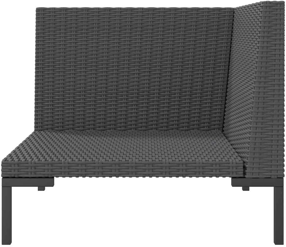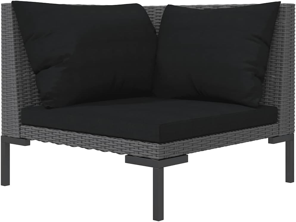 This corner garden sofa gives you a stylish yet practical place to sit outside, blending good looks with comfort. Made from tough synthetic poly rattan and powder-coated steel, it shows off a modern design with a woven finish that fits right in with any outdoor decor, making it a fabulous addition to balconies, gardens, or patios.Weather : The sofa is made from high-quality materials that resist water and humidity, ensuring it stays looking great even in tough weather. Enjoy your leisure time without stressing about the elements.Removable Cushions: Thoughtfully designed, the cushions zip off easily for quick cleaning or replacement, making upkeep straightforward and hassle-free. Enjoy a fresh look and comfortable seating every time.Compact and Versatile: At 27.6 x 27.6 x 24.0 in, this neat sofa fits well in smaller outdoor areas, creating cozy spots on compact balconies or spacious gardens.for intimate hangouts or just chilling.Contemporary Aesthetic: The modern look featuring a half-round design and sleek black color embellishes any outdoor spot, adding a touch of style and elegance to your patio, making it a welcoming space.Durability: The sofa’s strong design supports up to one person, ensuring it remains sturdy and stylish over time, making it a solid choice for your outdoor entertaining needs.Color: CharcoalShape: SquareMaterial: Synthetic Poly RattanFinish: Powder-CoatedIndoor/Outdoor: Outdoor OnlyCover Included: NoRoom: Garden and terraceMaximum Number of People: 1Dimensions: 27.6 x 27.6 x 24.0 in (W x L x H)Leg Height: 8.3 inWeight: 21.61 lbsSeat Depth: 23.6 inSeating Capacity: 1Swings: NoDelivery Contains: 1 x Sofa, 1 x Seat cushion, 2 x Back cushionAssembly Required: Yes