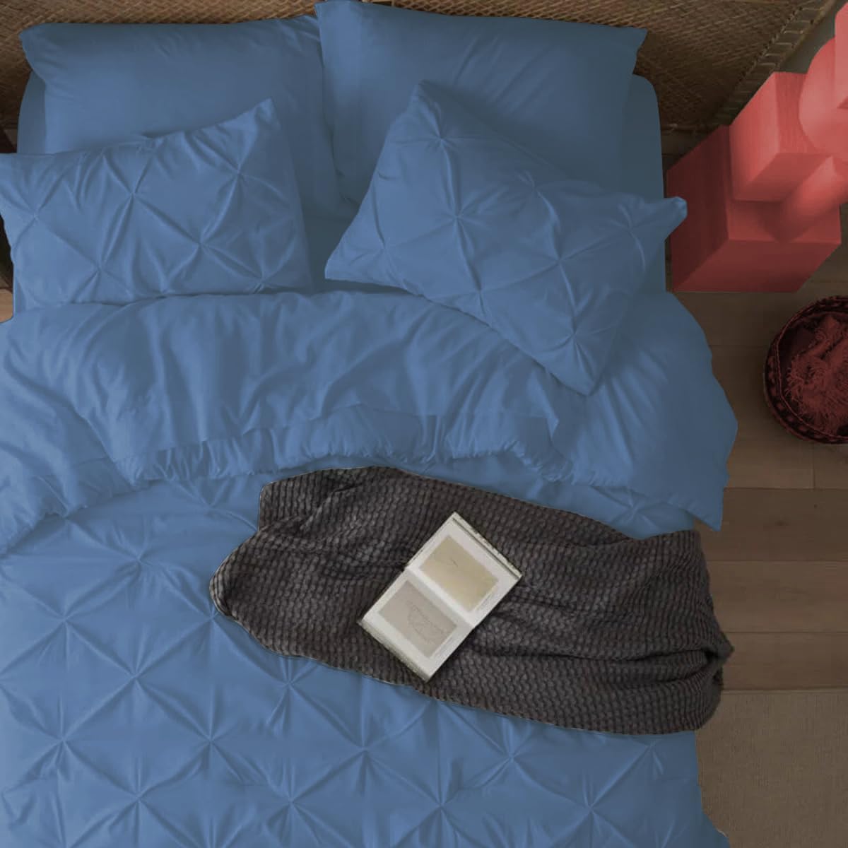 3 Piece Pinch Pleated Comforter Set Oversized Super King Size (120"x98") Inch 100% Egyptian Cotton 800 Thread Count With 400 Gsm Soft & Breathable Comforter Set - Medium Blue Solid