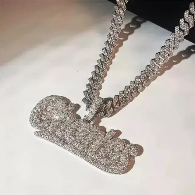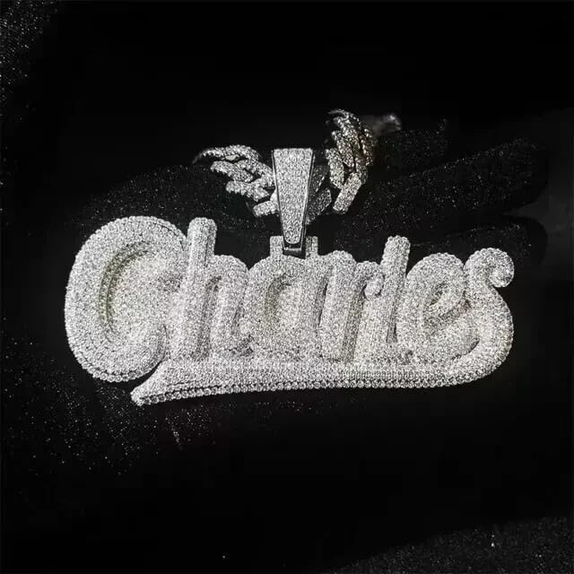 Make a bold statement with this dazzling custom moissanite name pendant. Featuring approximately 3.00 CTW of brilliant moissanite stones meticulously set in luxurious 14K white gold, this personalized charm brings unmatched sparkle and style to any outfit. Perfect as a hip hop fashion statement or meaningful gift, the pendant showcases expert craftsmanship with precisely cut stones that capture and reflect light beautifully. The customizable design allows you to create a unique piece that holds special meaning. This handcrafted charm pendant arrives without a chain, allowing you to pair it with your preferred chain style and length. The moissanite stones offer exceptional brilliance and durability, making this piece both eye-catching and lasting. Note that actual carat weight may vary slightly due to the custom nature of each piece. This striking accessory combines luxury materials with contemporary style for a truly memorable piece of jewelry.