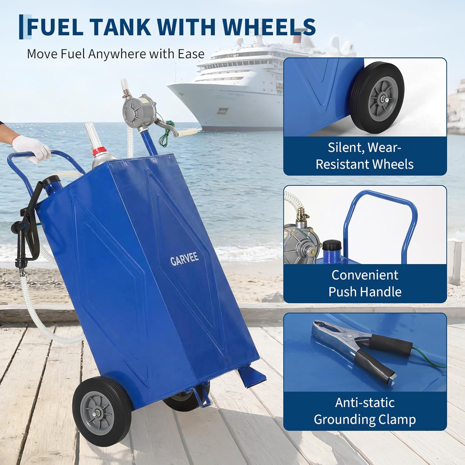 35 Gallon Fuel Gas Caddy Storage Tank, Portable Gas Caddy with Wheels, Manual Rotary Transfer Pump, Fuel Hose, Wide Fill Opening, Vent and Level Gauge, Mobile Gasoline Diesel Transfer Tank for ATV, Mower, Tractor, Car, Boat1. A practical 35 gallon Fuel Gas Caddy Storage Tank with manual pump and Portable Gas Caddy for equipment refueling.2. Designed as a Fuel Gas Caddy Storage Tank with hose and level gauge and a Portable Gas Caddy for gasoline diesel transfer.3. Useful as a wheeled Fuel Gas Caddy Storage Tank for garage or farm use and a Portable Gas Caddy for mobile fueling tasks.4. Built with a Fuel Gas Caddy Storage Tank with wide fill neck and a Portable Gas Caddy with rotary hand pump.5. Suitable as a Fuel Gas Caddy Storage Tank for ATV mower tractor fueling and a Portable Gas Caddy for small engine service.6. Functions as a Fuel Gas Caddy Storage Tank for boat car and lawn equipment and a Portable Gas Caddy with return-flow pump design.