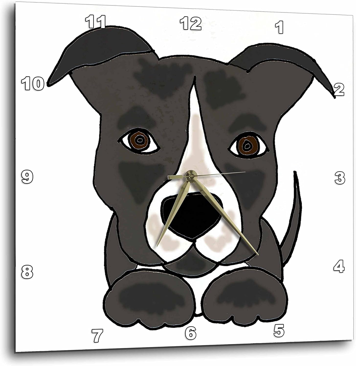 Funny grey Pitbull Puppy dog Cartoon wall clock is a wonderful complement to any room in your home or office. Made of durable high grade aluminum. This frameless clock has a high gloss mirror like, UV coated, scratch resistant finish and is suitable for a moist environment. Sizes available range from 10" x 10" to 15" x 15". requires one AA battery; not included. Battery box is not covered.