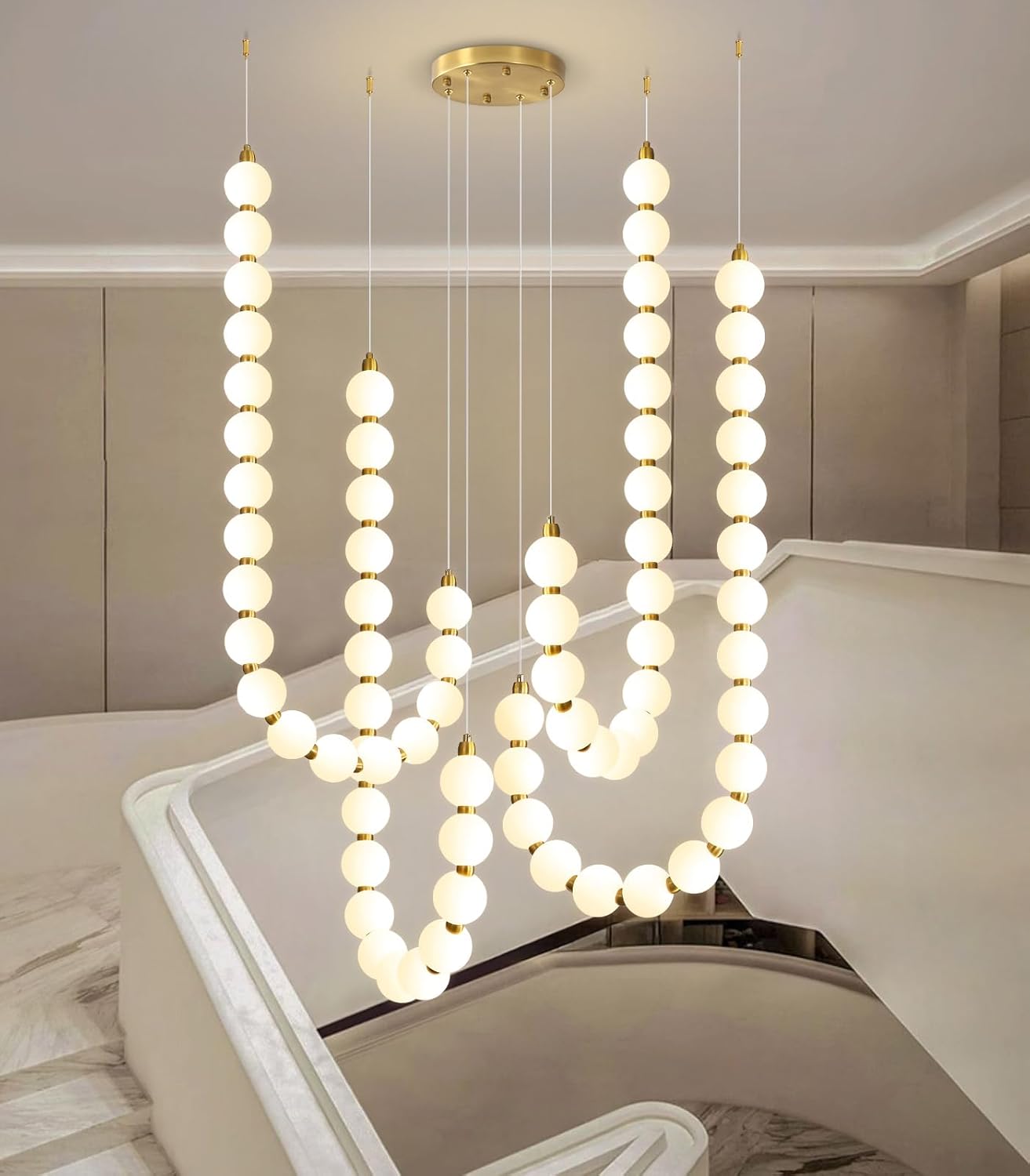 4 Ring Modern Chandeliers Acrylic Balls Ceiling Pendant Lighting LED Dimmable Light for Living Room Foyer Dining Room Entryway Adjustable Hanging Lights Gold