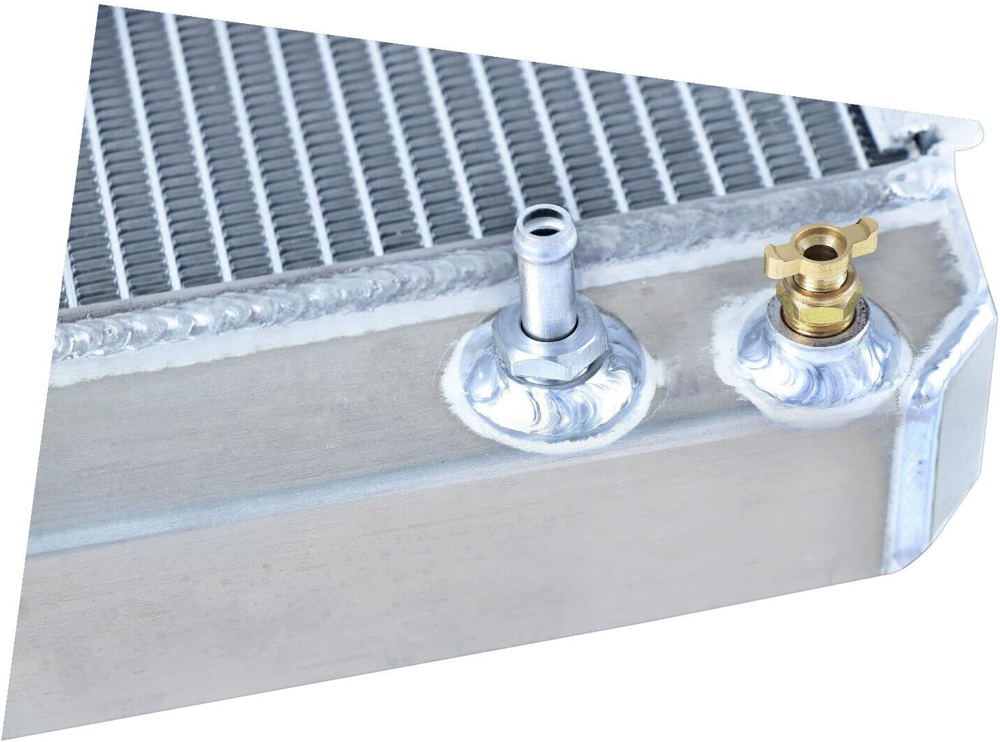 FitmentFits 1987-2006 Jeep Wrangler YJ/TJ 2.4,2.5,L4,4.0,4.2,L6Please NoticeThis Listing Is Including one Full Aluminum Radiator only (Contain CNC machined filler neck and cap)SpecificationsHigh Performance Racing Spec.4-Row of tubes Core Racing DesignCore Material: All AluminumTank Material: T-5057 Aircraft Grade AluminumSurface Finish: Aircraft Grade Raw AluminumIncludes CNC machined filler neck and capOEM Style Brass Petcock Drain.Core Size 17 1/2" high x 22 1/4" wideOverall Size 22" (22.85" incl Cap) high x 25 3/4" wide (incl brackets)Upper inlet: 1 1/4" located on driver sideLower outlet: 1 1/2" located on passenger sidePlease Check the Size Before You Buy!DescriptionWe All Products With Made By OEM Approved & ISO Certified Manufacturers With Materials That Meets Or Exceeds Strict OEM Requirements100% Brand New Item T-5057 Aircraft Grade Aluminum Radiator The core of the radiator is welded in vacuum brazing furnace, no epoxy.The Radiator are 100% welded by TIGThis Aluminum Radiator is designed to provide maximum cooling efficiency to prevent premature engine failure. Its light-weight, and high-heat transferring aluminum features a tube and fin design that, dramatically increases surface area that enables the heat to dissipate more efficiently. This Aluminum Radiator is at least 35%-45% more efficient than stock ones. Most importantly, it has a much higher capacity for coolant than stock ones, which means that your cooling system will be more efficient and will be more resistant to temperature surges in racing applications. S