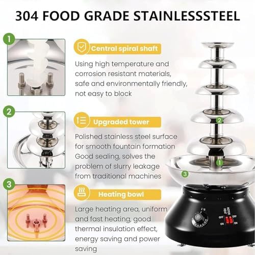 Indulge in the delightful experience of our Chocolate Fountain, an exquisite addition to any celebration or gathering. This elegantly designed chocolate fountain creates a mesmerizing waterfall effect, perfect for dipping fruits, marshmallows, and more. Crafted from durable stainless steel, it combines style and functionality, ensuring longevity and ease of use. Our Chocolate Fountain operates at both 110V and 220V with a power output of 230W, making it ideal for various settings. With a working temperature range of 30-110℃ (86-230°F), it melts chocolate smoothly, allowing you to enjoy rich, flowing chocolate without hassle. The compact size of 33x61cm makes it easy to set up on tables, enhancing the visual appeal of your dessert bar. Included in the package are essential components: the host, tower column, faucet column, and cleaning brushes, ensuring you have everything you need for a seamless experience. For optimal performance, remember to use melted chocolate only, avoiding lumps or solid pieces. After your event, follow the simple cleaning instructions to maintain your fountain’s pristine condition. Use water heated to 50-60°C for cleaning, and never submerge the machine in water. Whether it’s a birthday party, wedding, or corporate event, our Chocolate Fountain adds an interactive and enjoyable element, allowing guests to create their own delicious treats. Elevate your dessert offerings and create unforgettable memories with this delightful chocolate fountain.