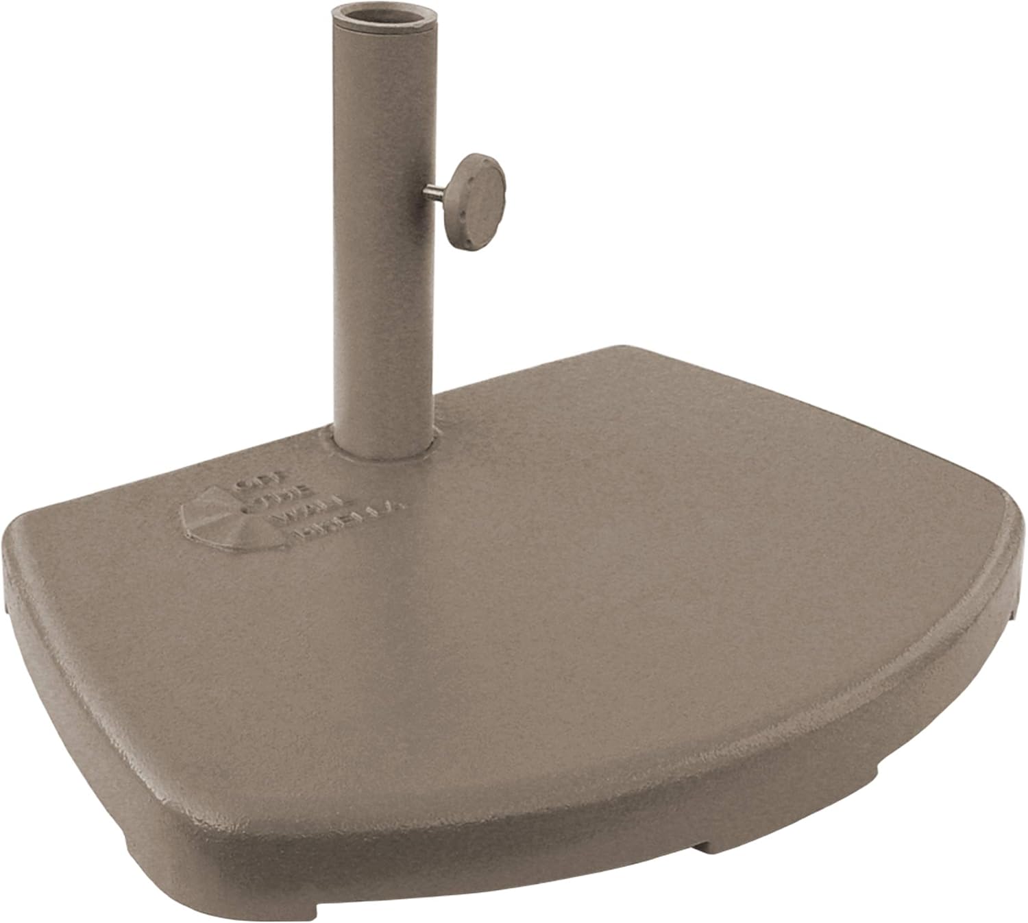CCB-2-40 Features: -Base.-Specially designed for the Off-The-Wall Brella.-Three (3) adjustable levelers under the base will compensate for uneven surfaces.-Removable stand tube for convenient storage. Color/Finish: -Colors: Champagne.-Durable champagne powder coat finish. Specifications: -40 lbs weight for maximum stability in any weather. Dimensions: -Dimensions: 11'' H x 19.5'' W.