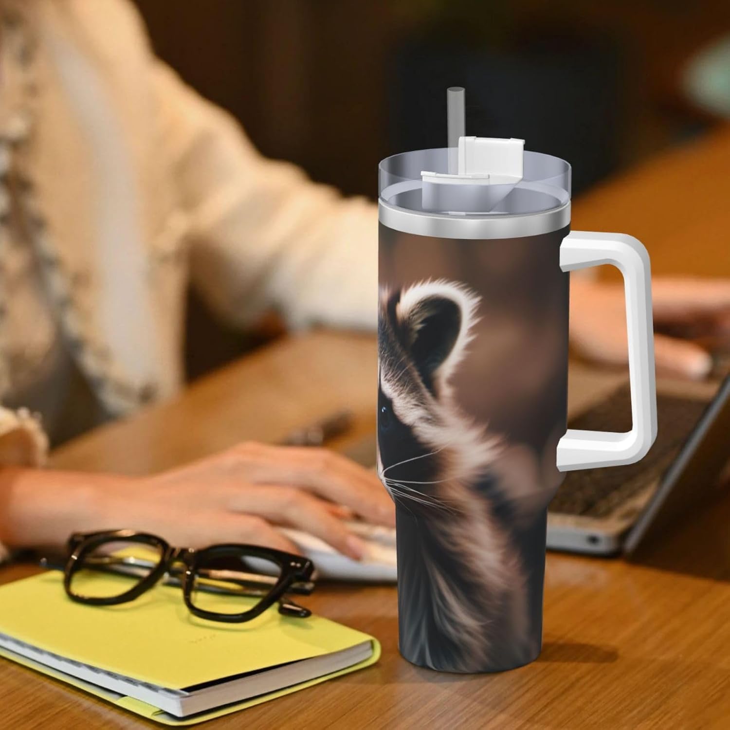 This cute raccoon (1) Print Ice Bully Cup features a double layer stainless steel design that can be used for a long time without rusting. The lid has good sealing to prevent water from overflowing, and it is easy to unscrew for filling and cleaning. It can keep water, coffee, or drinks warm or cool for hours and is suitable for travel, camping, and driving.