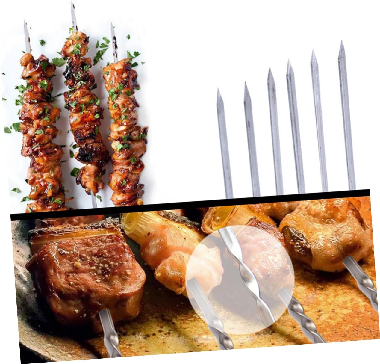 Package Include barbecue sticks Characteristics -Color: Silver stainless steel barbecue stick. -Size: Approx. 45x0.39x0.1cm stainless steel barbecue bar. -Material: Stainless Steel. - Suitable for outdoor BBQ party, barbecue restaurant, camping barbecue skewer. - Unique shape design prevent your food from spinning/rolling and it makes getting an even cook easier barbecue stick. - 45cm long size design prevents people from getting burned easily when grilling reusable BBQ skewer. - Made from grade stainless steel, contain no harmful chemicals that leach into your food, it is rust-free, heavy duty. - Adopting stainless steel design for reused.Goods Descriptionstainless steel barbecue bar Special shape and wide blades makes your cooking .barbecue stick No worry about burned stick destroy the meat's taste anymore.reusable BBQ skewer Suitable for BBQ lovers and home BBQ party holders.barbecue skewer Included 50pcs barbecue use sticks, and all of these sticks are made of stainless steel material