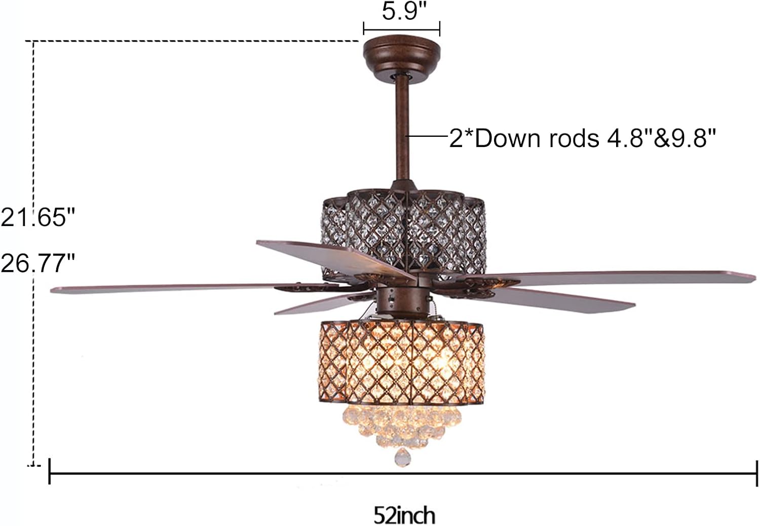 | Included Components | 5 Blades, 2 Downrods, 1 Canopy, 1 Motor, 1 Mounting Bracelet, 1 Lampshade, 1 Screws Pack, 1 Manual, 1 Remote Control |