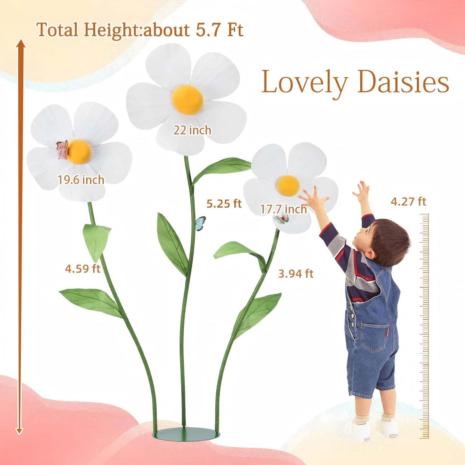Cute Five-petaled Daisies Large daisy flowers artificial with stand and stems for wedding decorations,stage backdrop decorations,daisy birthday party decorations,home decorations and holiday decorations,daisy baby shower decorations. The complete package contains: ①Flower Base * 1 ②Flower Stems * 3 ③flower heads * 3 Notes on use: ① When you plan to decorate your outdoor garden party with them, please reinforce the base to avoid being blown down by the wind. ② After the party, put them away and keep them indoors out of the rain and prolonged exposure to the sun. ③ Due to different computer monitor and lighting, flowers may have some color differences.