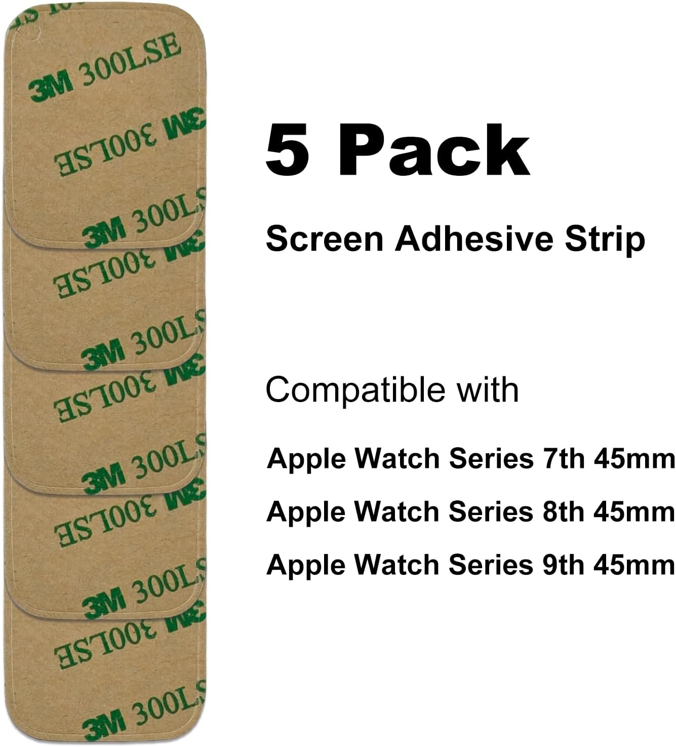 5Pcs Pre-Cut Screen Sticker Compatible with Apple Watch Series 7/8/9 45mm Waterproof Frame Sticker Replacement, with Tools, Instruction