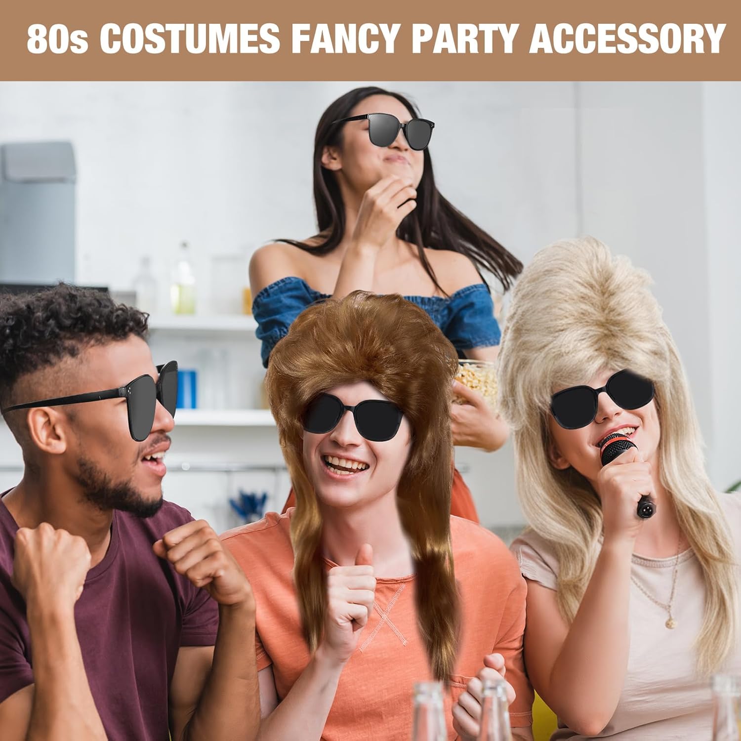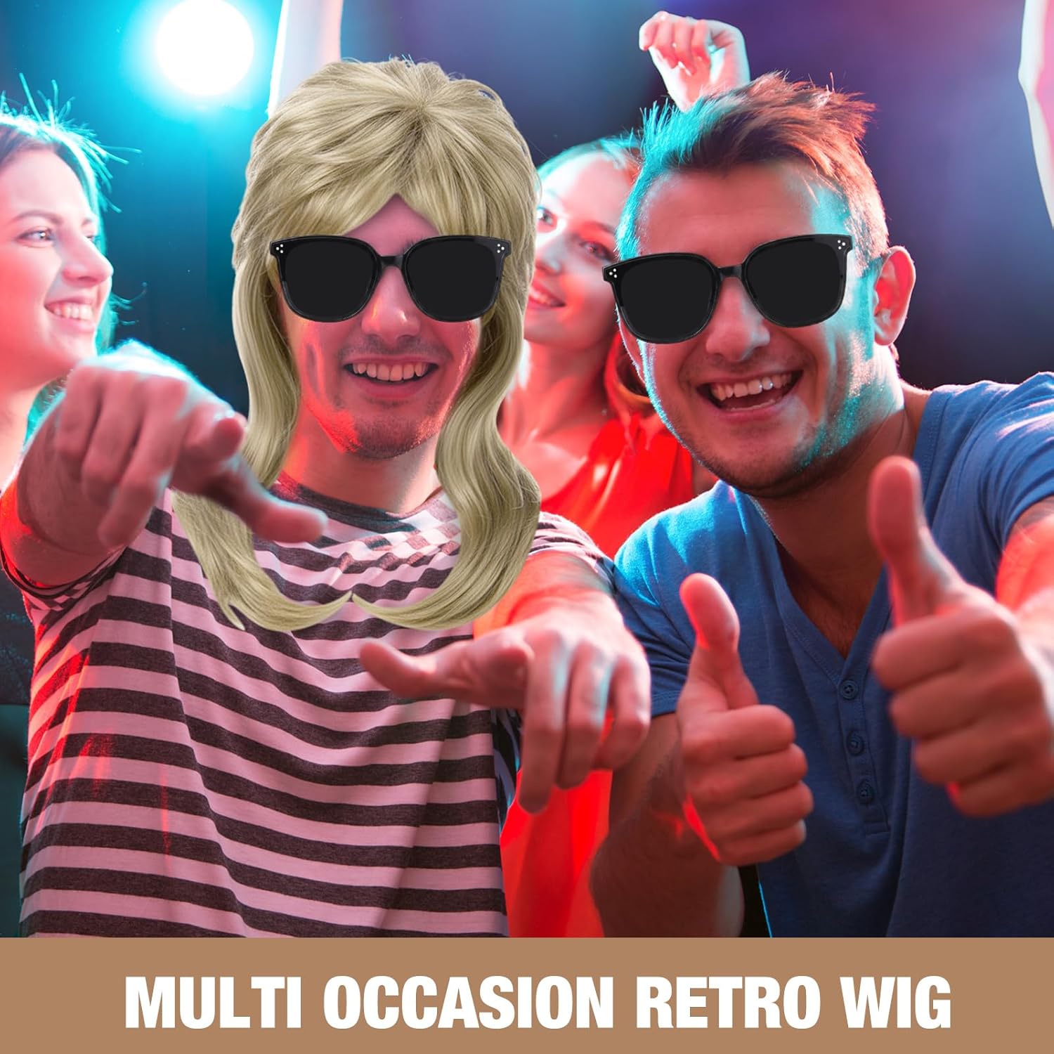 Features: The classic 80s and 90s mullet wig design is available in multiple colors. It can easily create a nostalgic atmosphere for retro parties, cosplay or Halloween. It is suitable for all kinds of retro theme occasions and has a built in sense of the times filter. The 80s wig set not only has a realistic synthetic fiber wig, but also comes with sunglasses and a comb. The sunglasses add a retro coolness, and the comb is convenient for daily styling. With a complete set, you can create a complete retro look without any worries. Specifications: Material: synthetic fiber Color: multicolor Size: as shown picture Package includes: 6 x Wigs 6 x Sunglasses 2 x Combs Notes: Manual measurement, please allow slight errors on size. The color may exist a slight difference due to different screen displays