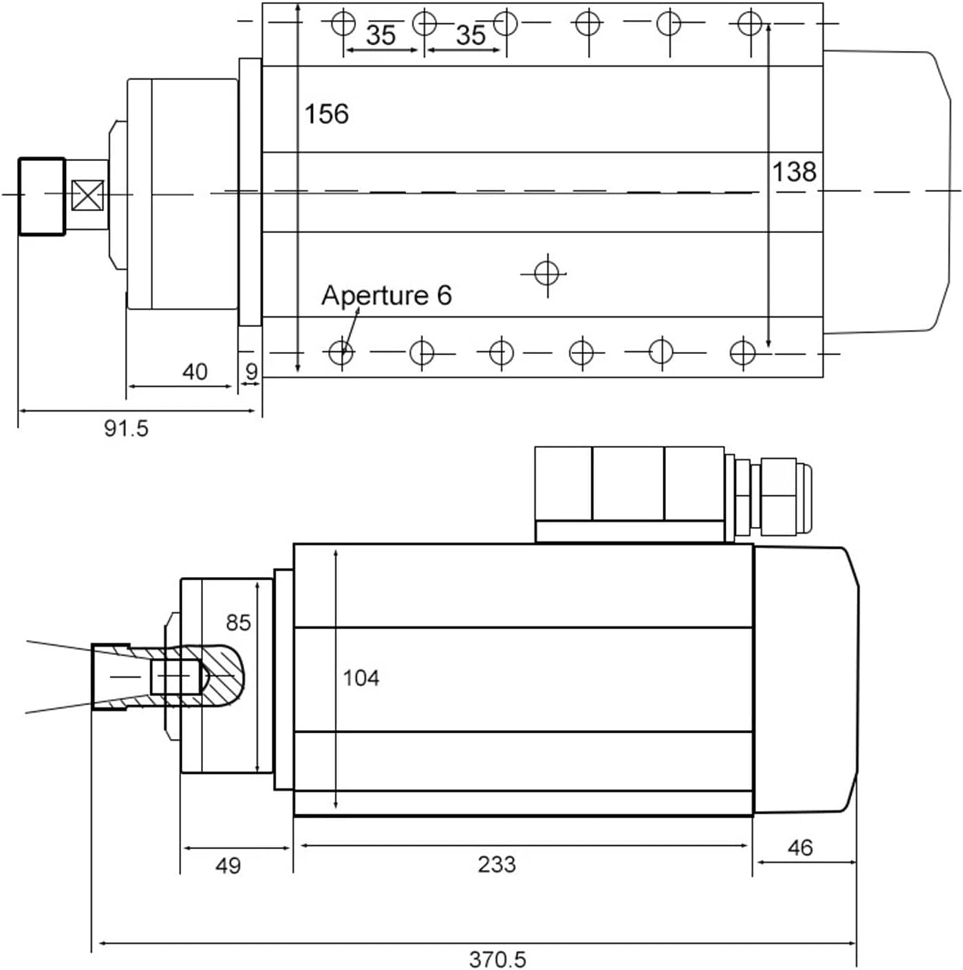Slotting Cutter ArborsModel: GDF120-102-6.0Speed regulation method: Change the spindle speed through the three-phase output inverter and adjust the frequency of the inverter.Cooling method: air coolingPower interface: An optional 5-pin waterproof aviation connector is marked with "1", "2", "3", "4", "5", and "GND". "1", "2", and "3" are connected to the inverter (U, V, W) respectively, and "GND" is connected to the inverter ground.(Note! Our spindle "4" is connected to GND for personal safety!!)Power: 6.0kw (1HP=0.735w)Voltage: 220V 380VCurrent: 16AFrequency: 0-300HzSpeed: 0-18000rpmJump: less than 0.01mmBearing type: 2*7008C P4, 2*7002C P4 (4 ball bearings)Chuck: ER32Clamping tool diameter: 1mm, 2mm, 3mm, 3.175mm (1/8), 4mm, 5mm, 6mm, 6.35mm (1/4), 7mm, 8mm, 9mm, 10mm, 11mm, 12mm, 12.7mm (1/2), 13mm, 14mm, 15mm, 16mm, 17mm, 18mm, 19mm, 20mm