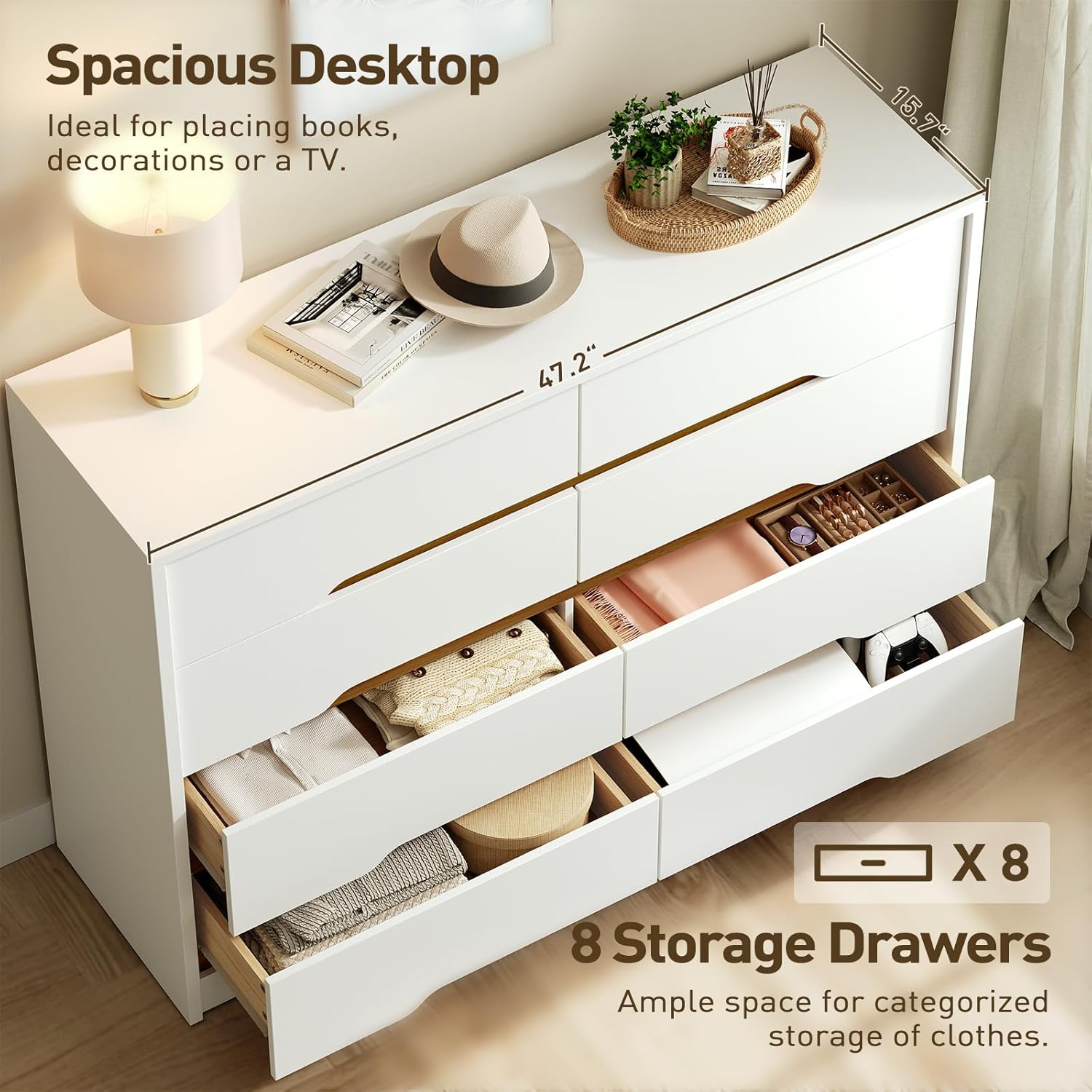 | Included Components | - 1 x Hardware Kit, 1 x 8 Drawer Dresser, 1 x Anti-Tip Device, 1 x Instruction Manual |