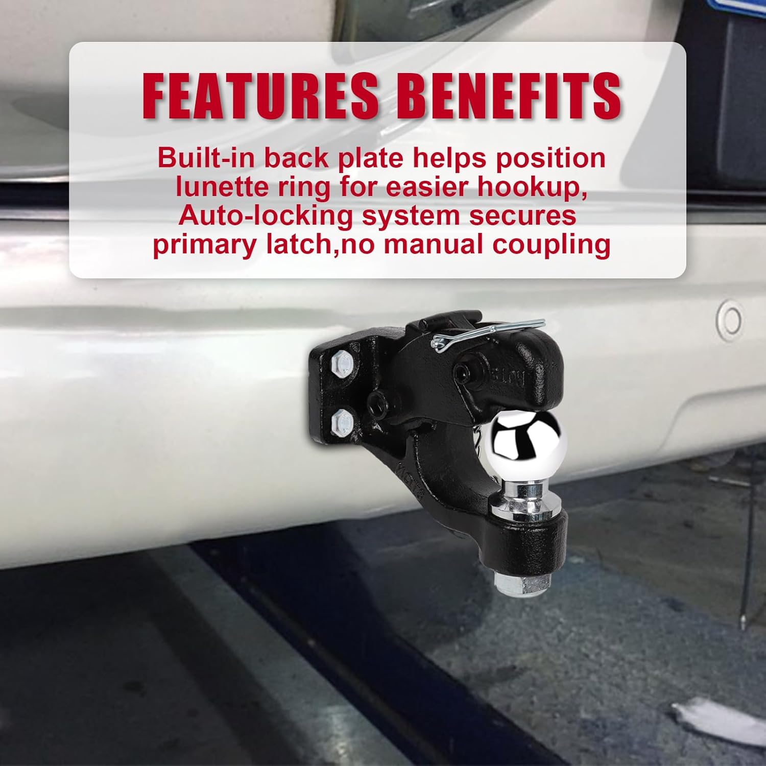 Made of very strong and durable forged steel structure.Fits 2-5/16" trailer couplers or lunette eyes with a 2-1/2" or 3" inside diameterPintle Hook with 2-5/16"" Ball Combo Trailer Hitch