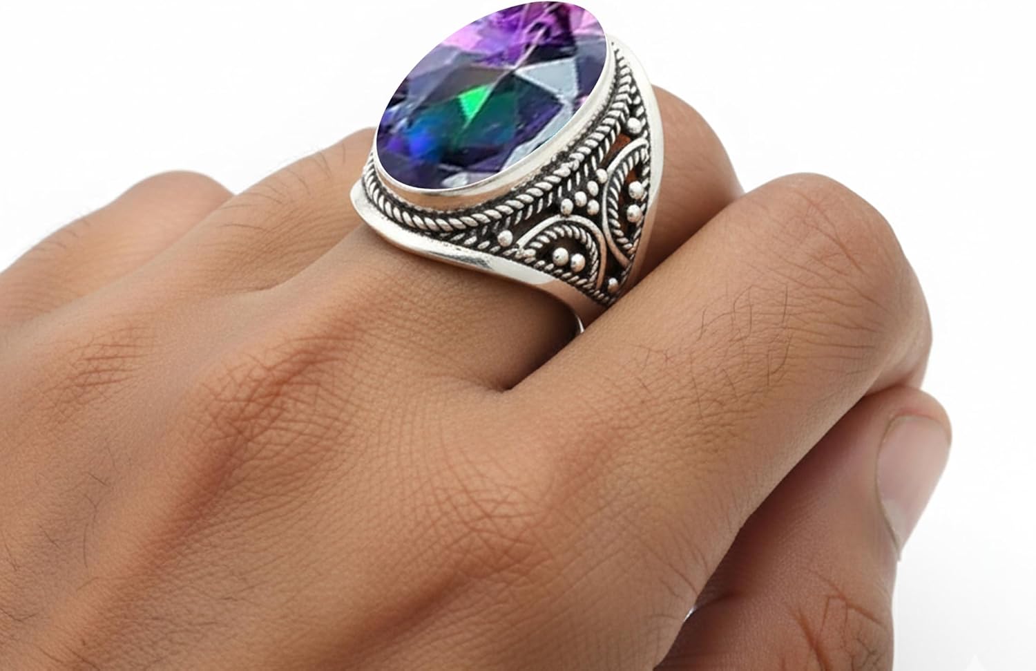 Embrace timeless boho charm with this large oval-shaped statement ring, beautifully handcrafted in 925 sterling silver. Designed with an intricate filigree pattern and set with your choice of gemstone birthstone, this ring celebrates individuality and artistry. Perfect for adding a touch of elegance to any outfit, it makes a unique and meaningful gift for her ideal for birthdays, anniversaries, christmas, valentine, new year, memorial, halloween or any special occasion. Please note that each stones have their own identity they may vary from each other in different size shape and color therefore the listed picture does not represent the exact same piece.