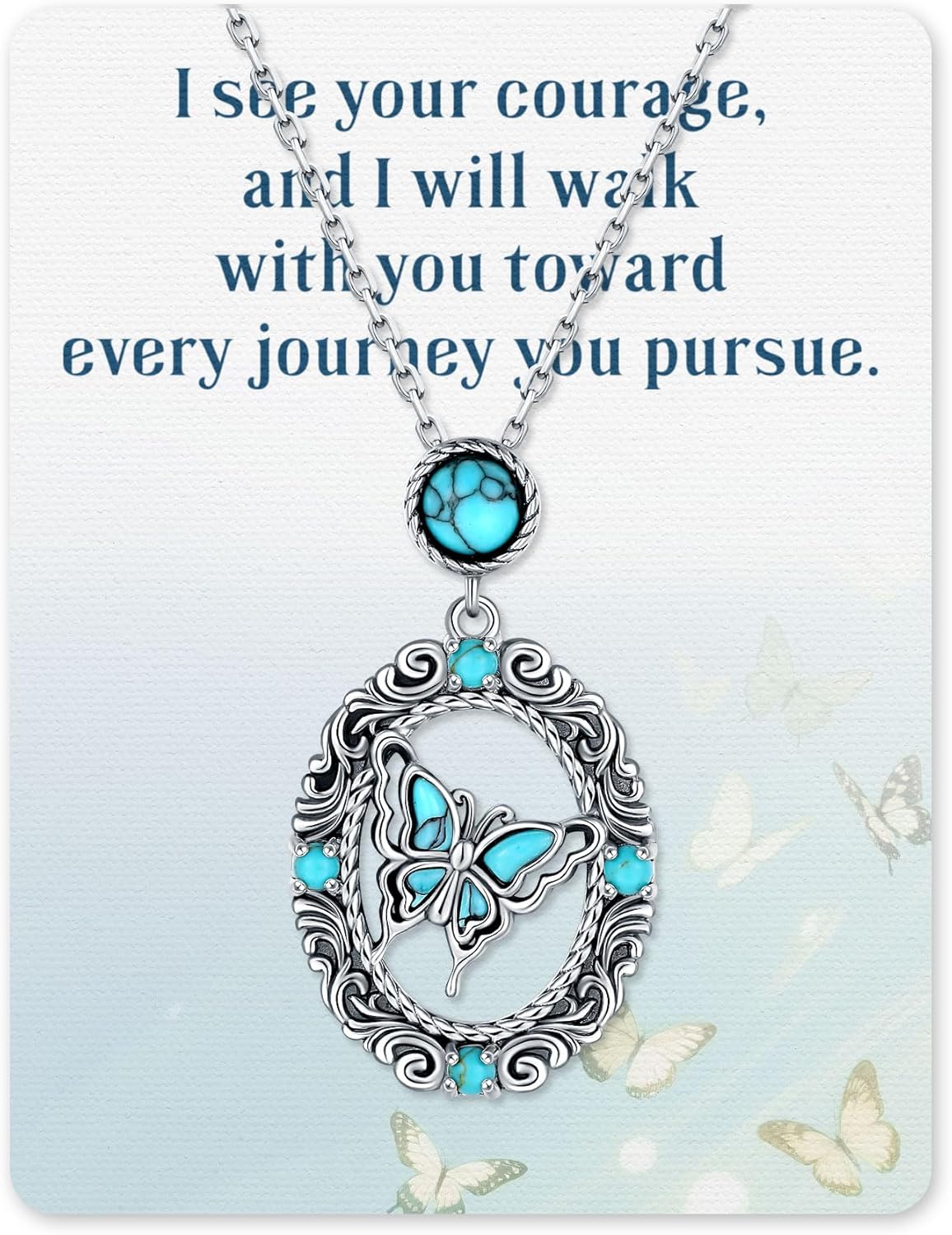 Jewelry can be more than decoration — it can carry meaning. This turquoise necklace collection brings together a variety of symbolic designs inspired by nature, faith, and personal growth. From graceful angel wings to butterflies, dragonflies, crosses, and floral motifs, each pendant tells its own story while sharing the same timeless aesthetic. Crafted in 925 sterling silver and accented with turquoise stones, these necklaces combine vintage character with natural beauty. Turquoise has long been admired for its calming color and symbolic connection to balance, protection, and positive energy. Whether worn as a personal reminder or given as a meaningful gift, each necklace in this collection represents strength, transformation, and the beauty of life's journey.