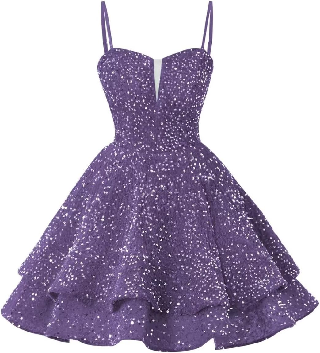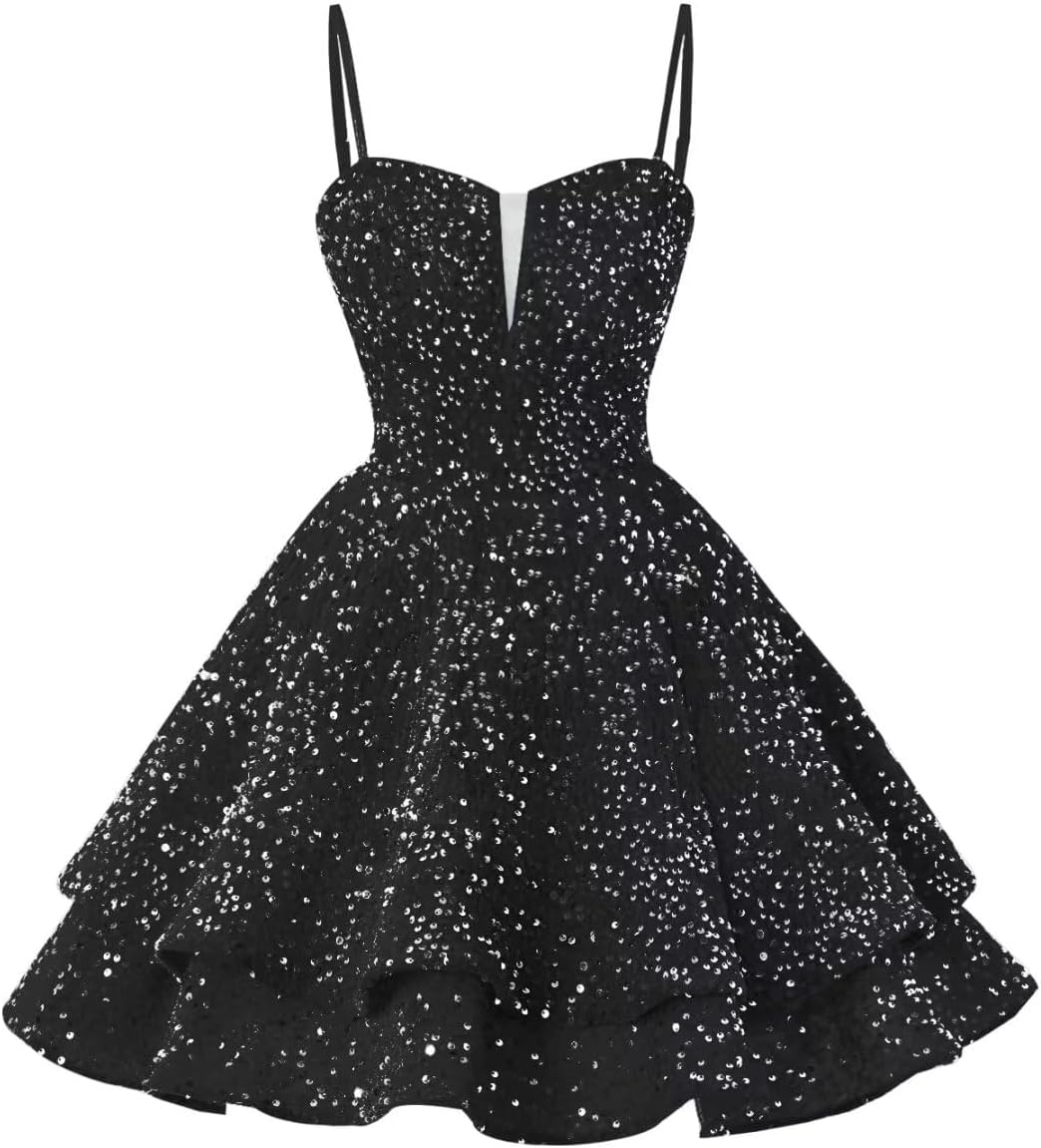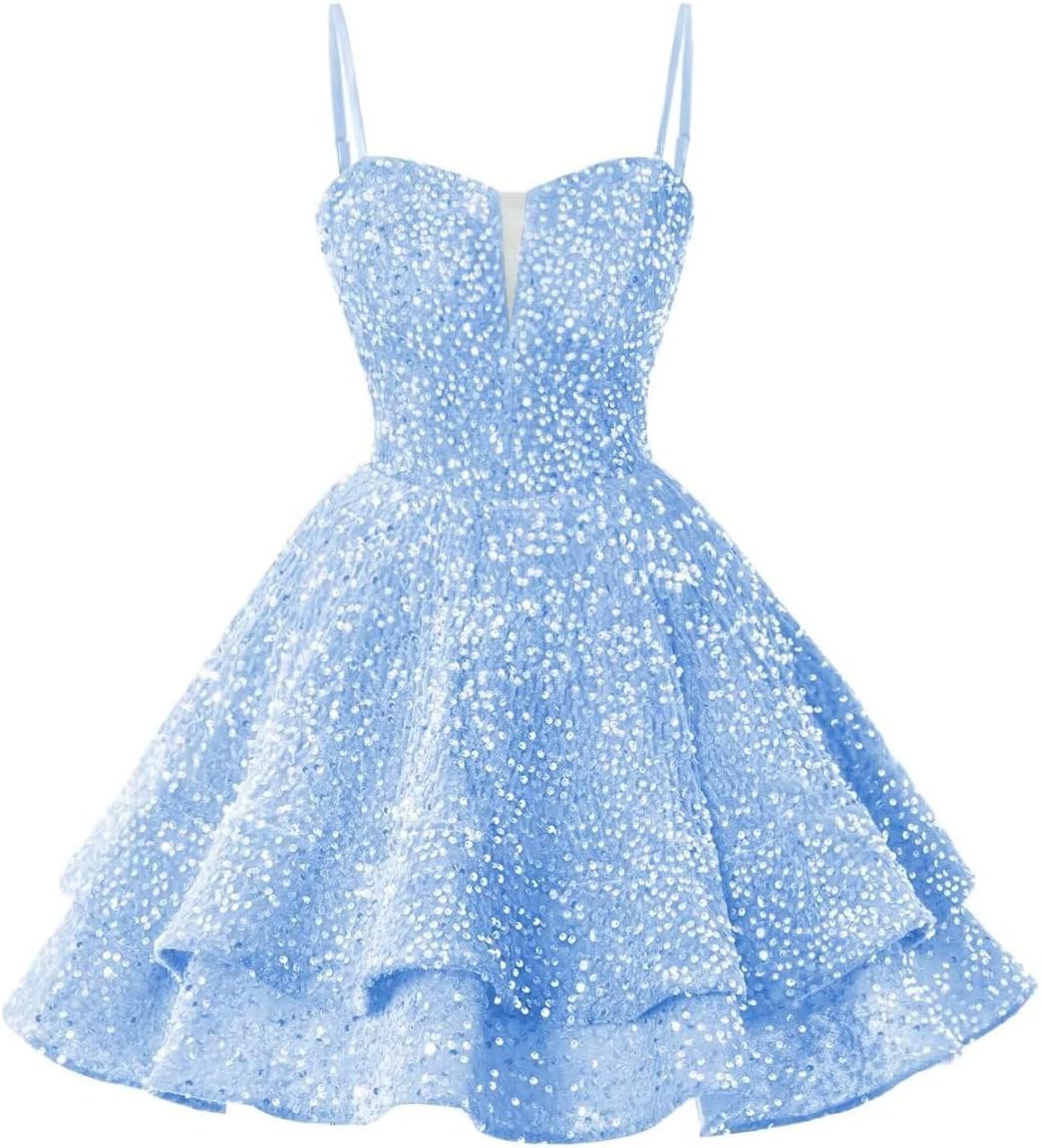 A Line Glitter Sequin Tulle sleeveless Homecoming Dress for Women Spaghetti Straps, Mini Sweetheart Backless Cocktail Party Dress Prom Dress High Waist Lace Up Corset BackDress FeaturesFabric:sequin satin/tulleStraps:spaghetti strapsNeckline:sweetheartSleeves:sleevelessSilhouette:a lineSize:plus sizeDecorations:sequins/ruffleBack:backlessWaistline:empire waist/high waistLength:short/miniClosure:zipper/lace up corset backOccasions: This short prom dresses sleeveless is great for luxury parties, prom dresses, birthday princess dress, adult ceremony ball dress, dresses ball gowns, homecoming dress, evening parties dress, cocktail club, carnival ball, holiday, reception, sweet 16 dress, bridesmaid, wedding guest dress, celebrations, ceremony, graduation, and any other occasions.Custom Size:In addition to standard sizes, we also provide customized sizes, if you need customized dresses, please send us your bust/waist/hips/height/customized sizes, customization will not cause the dress to be late.
