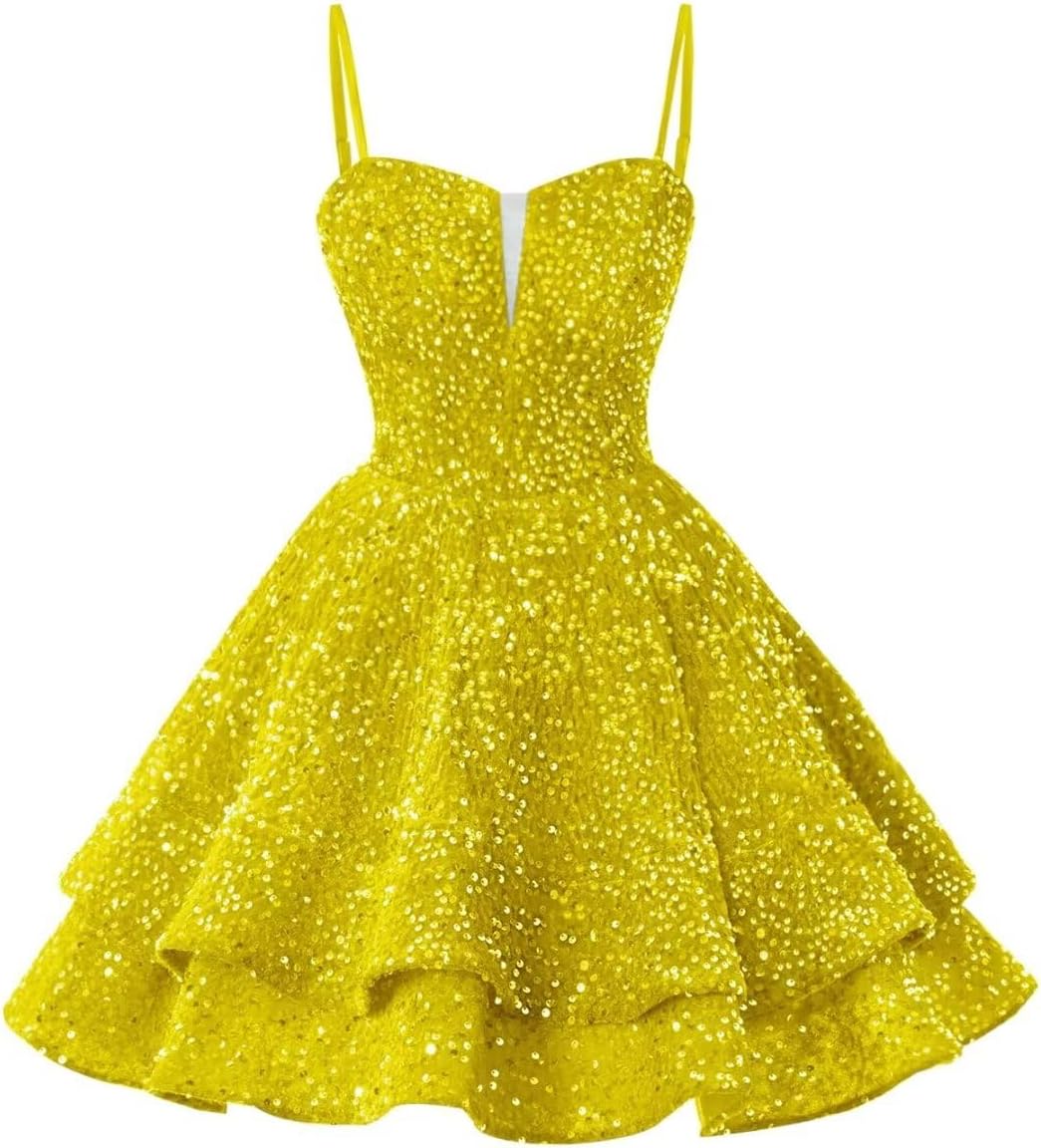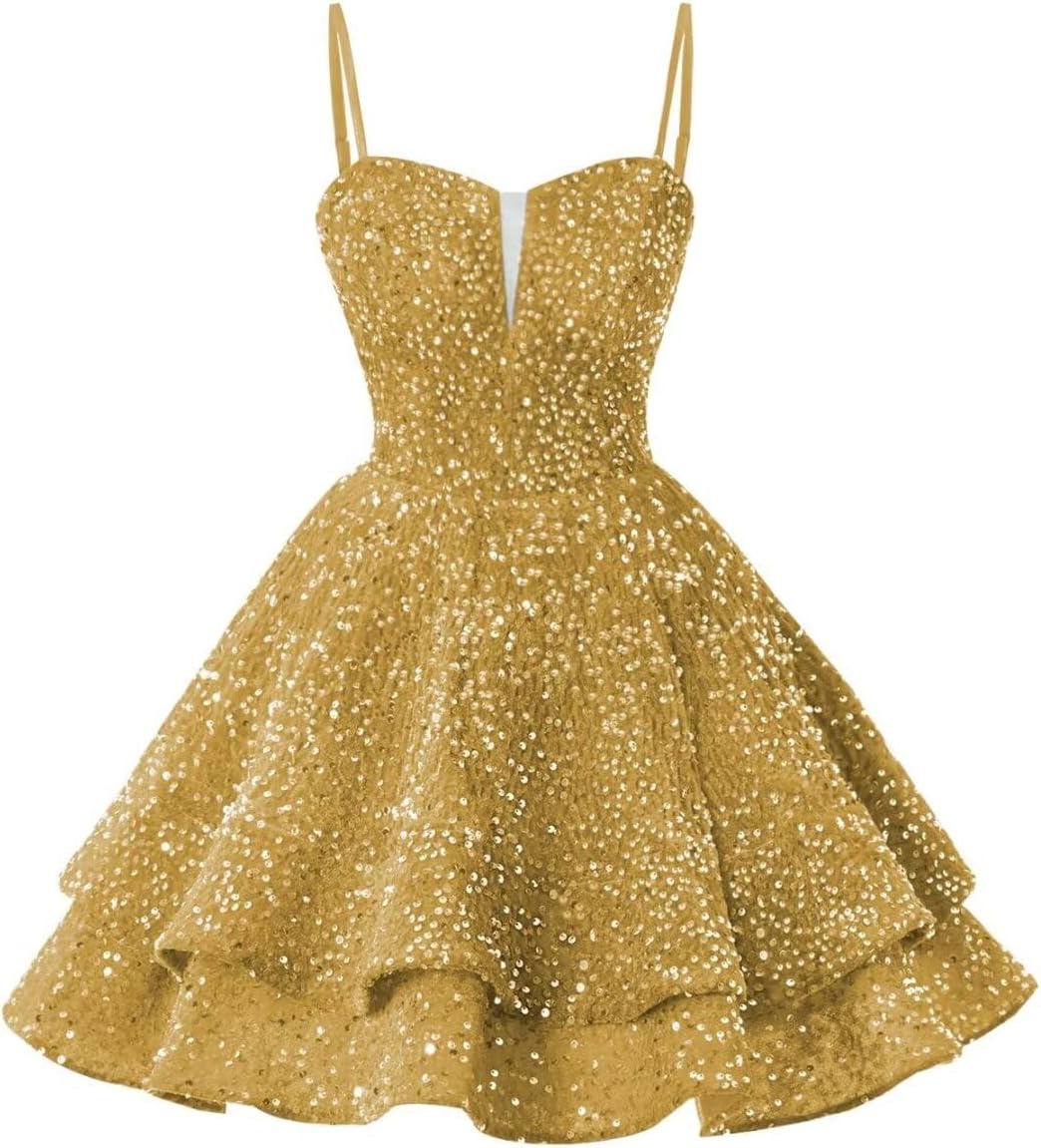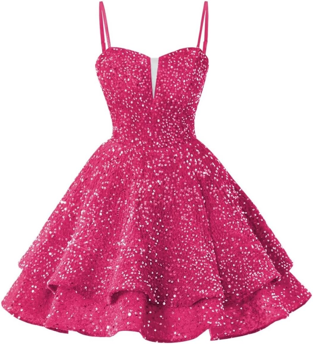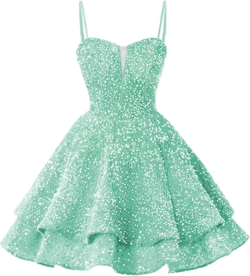A Line Glitter Sequin Tulle sleeveless Homecoming Dress for Women Spaghetti Straps, Mini Sweetheart Backless Cocktail Party Dress Prom Dress High Waist Lace Up Corset BackDress FeaturesFabric:sequin satin/tulleStraps:spaghetti strapsNeckline:sweetheartSleeves:sleevelessSilhouette:a lineSize:plus sizeDecorations:sequins/ruffleBack:backlessWaistline:empire waist/high waistLength:short/miniClosure:zipper/lace up corset backOccasions: This short prom dresses sleeveless is great for luxury parties, prom dresses, birthday princess dress, adult ceremony ball dress, dresses ball gowns, homecoming dress, evening parties dress, cocktail club, carnival ball, holiday, reception, sweet 16 dress, bridesmaid, wedding guest dress, celebrations, ceremony, graduation, and any other occasions.Custom Size:In addition to standard sizes, we also provide customized sizes, if you need customized dresses, please send us your bust/waist/hips/height/customized sizes, customization will not cause the dress to be late.