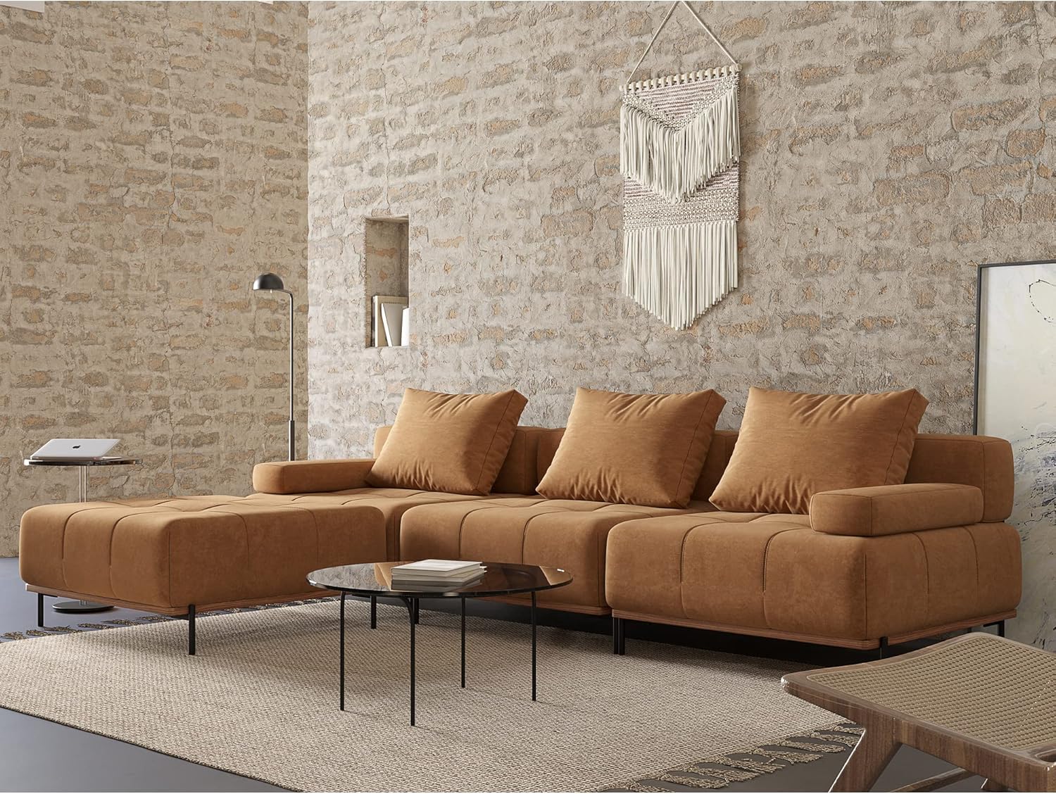 This Acanva modular sectional sofa is made from premium suedette fabric and has a sturdy wood frame and iron legs. Easy assembly and maintenance. If you want to find a perfect small solution for your living room or apartment, this single sofa chair is the best choice. Ottoman, chaise, couch, L-shaped, U-shaped, you can arrange varieties of combination as your preference. Available in three colors, beige, brown and green. Freely mix and max modular units with different colors to inspire your lounge area.
