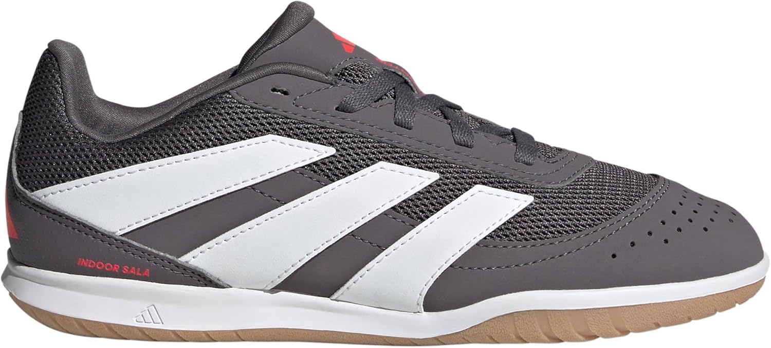 Go into every game in a pair of juniors' adidas soccer shoes crafted for scoring goals. Lined with soft fabric and overlaid with tough TPU, they have a mesh upper that promotes airflow during fast-moving matches. The non-marking rubber outsole is optimized for play on flat indoor surfaces.
