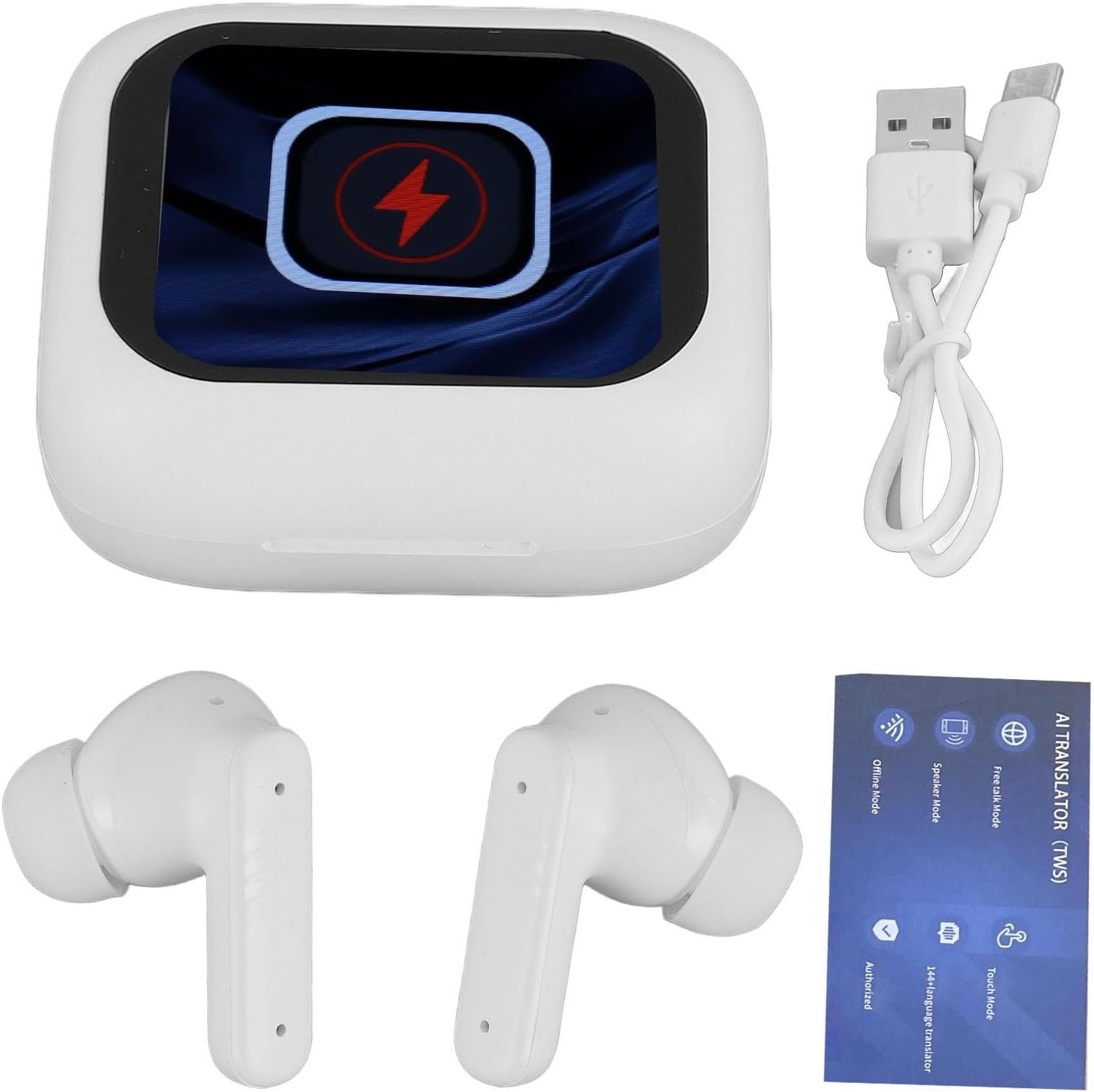 Specification: Item Type: Translation Earphones Material: ABS Earphone Battery Type: Built In 40mAh Lithium Ion Battery x 2 Charging Case Battery Type: Built In 320mAh Lithium Ion Battery BT Version: V5.4 Transmitting Distance: Approx. 15-20m / 49.21-65.62ft Software Authorization Time: 1 Month (Translate software service period of one month, self-renewal for later use) 137 Language Translations: Albanian (Albania), Amharic (Ethiopia), Arabic (Algeria), Arabic (Bahrain), Arabic (Egypt), Arabic (Iraq), Arabic (Israel), Arabic, Arabic (Kuwait), Arabic (Lebanon), Arabic (Morocco), Arabic (Oman), Arabic ( Qatar), Arabic (Saudi Arabia), Arabic (State of Palestine), Arabic (Tunisia), Arabic (United Arab Emirates), Arabic (Libya), Arabic (Syria), Arabic (Yemen), Armenian (Armenia), Azerbaijani (Azerbaijan), Basque (Spain), Bengali (Bangladesh), Bangla (India), Bengali (India), Bosnian (Bosnia and Herzegovina), Bulgarian (Bulgaria), Burmese (Myanmar), Catalan (Spain), Chinese (Mandarin), Chinese (Cantonese), Chinese (Traditional Chinese), Croatian (Croatia), Czech (Czech Republic), Danish (Denmark), Netherlands (Netherlands), Dutch (Belgium), Dutch (South Africa), English (Australia), English (Canada), English (Ghana), English (Hong ), English (India), English (Ireland), English (Kenya), English (New Zealand), English (Nigeria), English (Pakistan), English (Philippines), English (Singapore), English (South Africa), English (Tanzania), English (UK), English (United States), Estonian (Estonia), Philippine (Philippines), Finnish (Finland), French (Belgium), French (Canada) French (France), French (Switzerland), Galician (Spain), Georgian (Georgia), German (Austria), German (Germany), German (Switzerland), Greek (Greece), Gujarati (India), Hebrew (Israel), Hebrew (India)……
