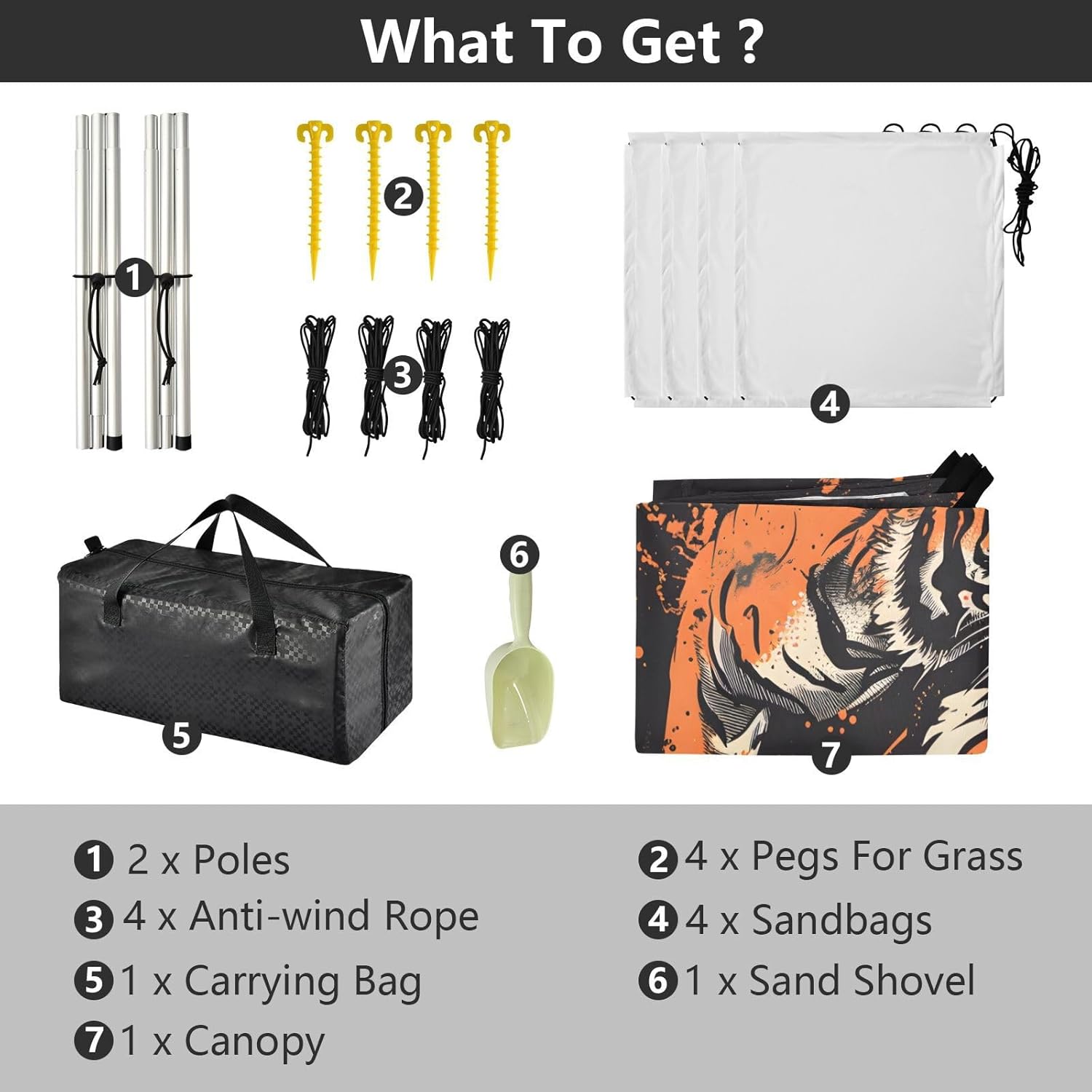 Unpack Cooling trip in 10 minutes! Our 280x320cm beach tent features silver-coated polyester oxford fabric that actively deflects heat while providing UPF 50+ protection-say goodbye to sunburns and squinting! Express your style with eye-catching, tropical-inspired prints that transform ordinary shade into a vibrant oasis. Engineered for stubborn coastal winds, the reinforced frame supports extra guy ropes alongside the included 4 refillable sandbags (use the free shovel!), 4 heavy-duty steel stakes, and 4 reinforced ropes. This high-grade anchoring system laughs at 25mph gusts while you relax. Adventure Beyond Sand: Beach lounging Lakeside camping Park picnics Fishing trips Festival hangouts Backyard "staycations