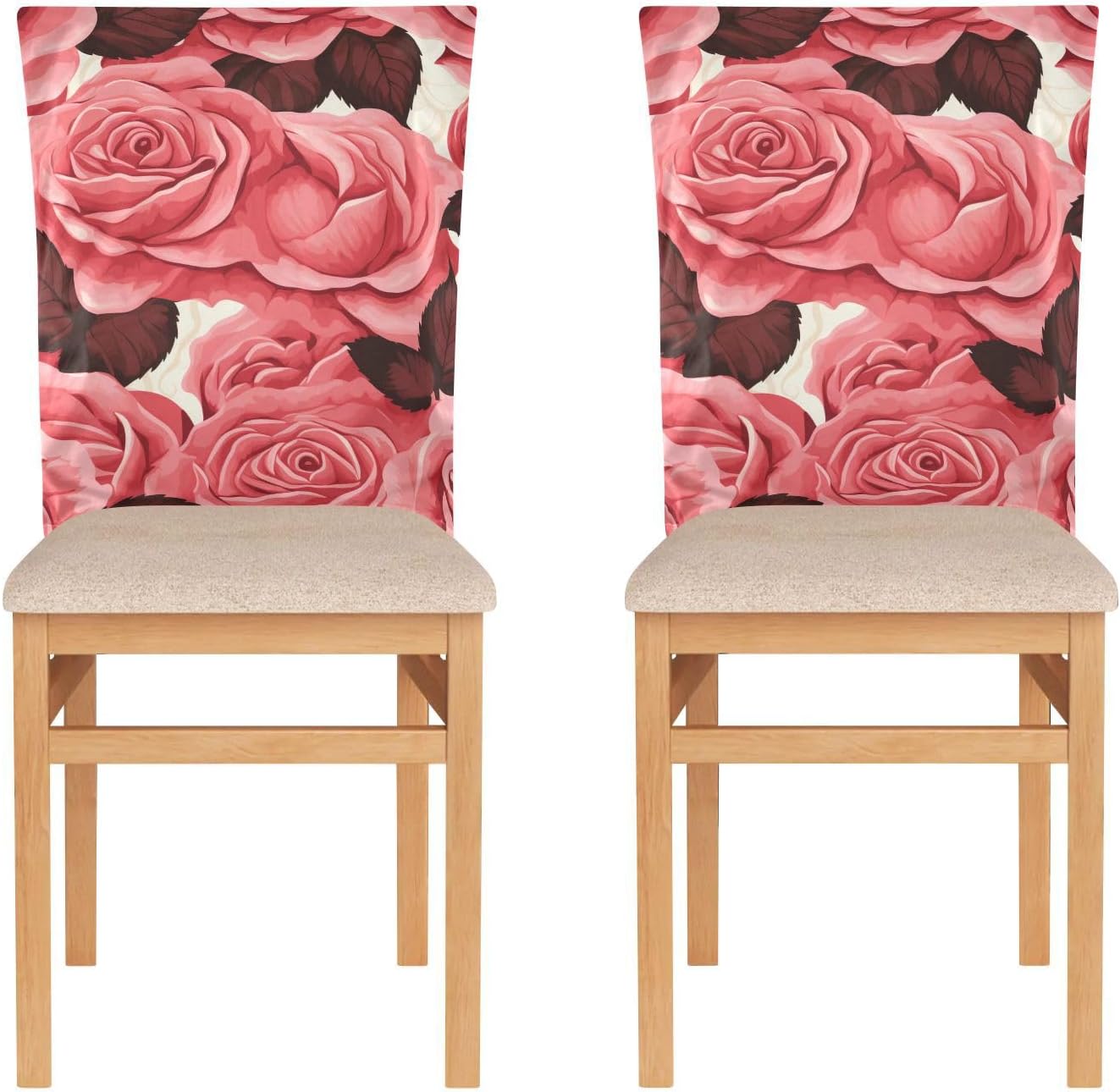 Chair Cover Material made of polyester,comfortable and soft to touch,reusable and suitable for long term use Features easy to install and remove, tie rope design at the bottom,machine washable Stylish Chair Decoration With beautiful pattern,it can be used for family party/ birthday party/wedding/ holiday party to add atmosphere, also can be used for chair decoration in living room, dorm, kitchen dining room,bedroom to bring protection to the chair while avoiding stains to dirty the chair back. Easy To Care Machine washable, Not washing with hot water, Not bleaching
