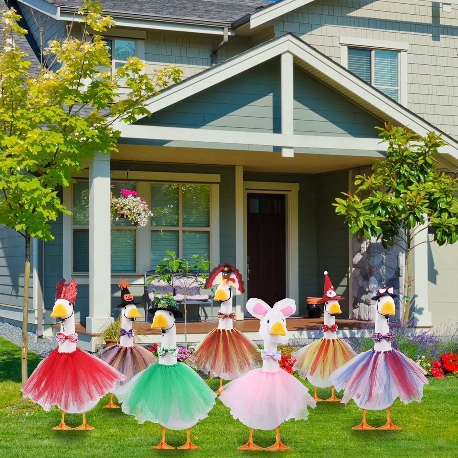 Our full season goose outfits covers the 8 most important festivals of the year, including Valentine's Day, St. Patrick's Day, Easter, 4th of July, Summer, Halloween, Thanksgiving and Christmas, these porch goose clothes make your outdoor space more interesting, and bring a cheerful atmosphere to the holiday. Specifications: Package included: 8 x seasonal holiday porch goose hats 8 x seasonal holiday porch goose bandana> Material: Fabric, plastic Color: As picture shown Warm Notes: [NOTE: The lawn goose not included] Manual measurement, please allow slight errors on size. The color may exist a slight difference due to different screen displays.