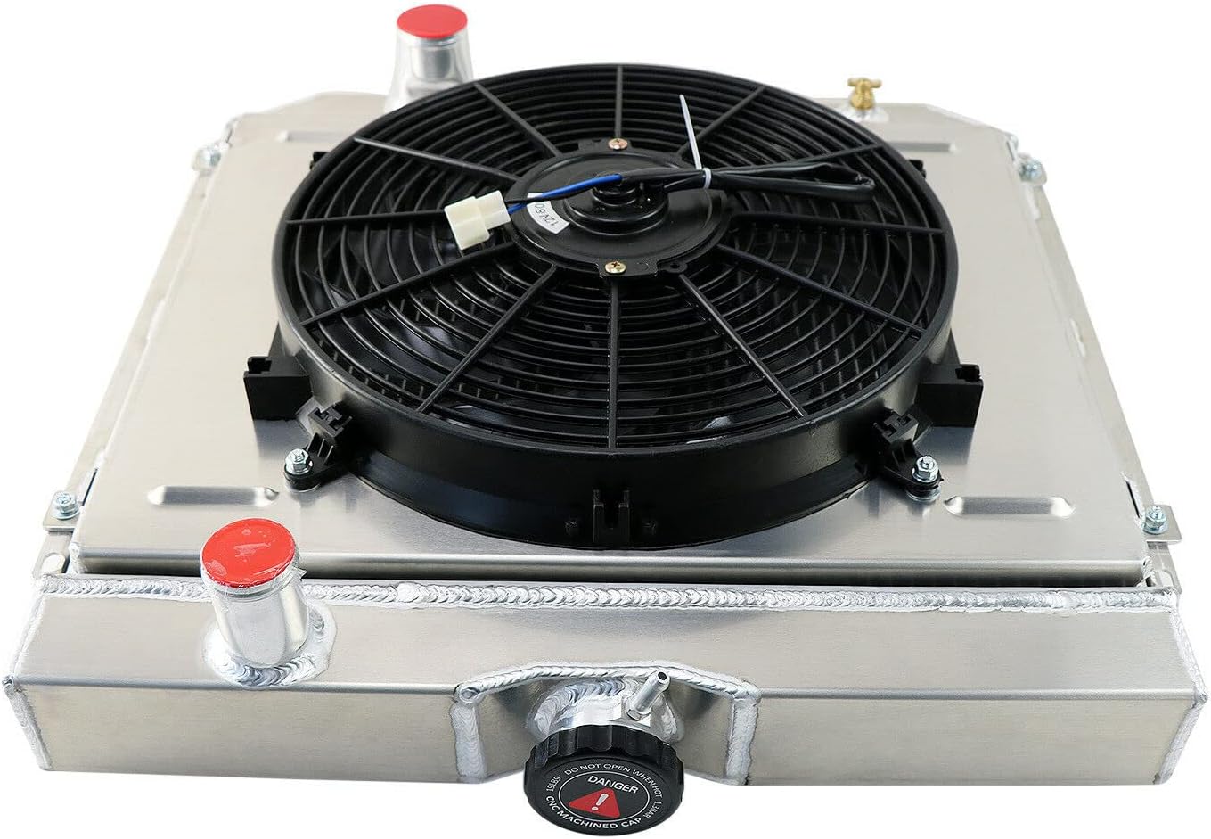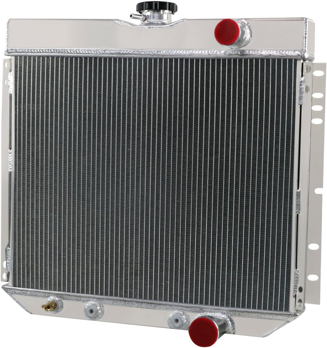 Welcome to our store, my deal buyer !This aluminum radiator is designed to provide maximum cooling efficiency to prevent premature engine failure. Its light-weight, and high-heat transferring aluminum features a tube and fin design that, dramatically increases surface area that enables the heat to dissipate more efficiently.This Aluminum Radiator is at least 40% more efficient than stock ones. Most importantly, it has a much higher capacity for coolant than stock ones, which means that your cooling system will be more efficient and will be more resistant to temperature surges in racing applications. FEATURES: Made of high quality full T-6061 aluminum construction Stronger and higher capacity for coolant than stock units 3-row tri core light-weight design Direct bolt-on OE fitment or replacement Improves cooling by 35% to 45% temperature Radiator size: Core Size:16 3/8 x 20 1/4 x 2 5/8 3 Rows Of Tubes Tank Size: 3 X 17 3/8 - Both Inlet Hose Connection: 1 1/2 Passenger Side Outlet Hose Connection: 1 1/2 Passenger Side Transmission Oil Cooler included OVERALL DIMENSIONS :21" HIGH X 22 1/4" WIDE MOUNTING BRACKET BOLT HOLE SPECS:21" WIDE CENTER TO CENTER