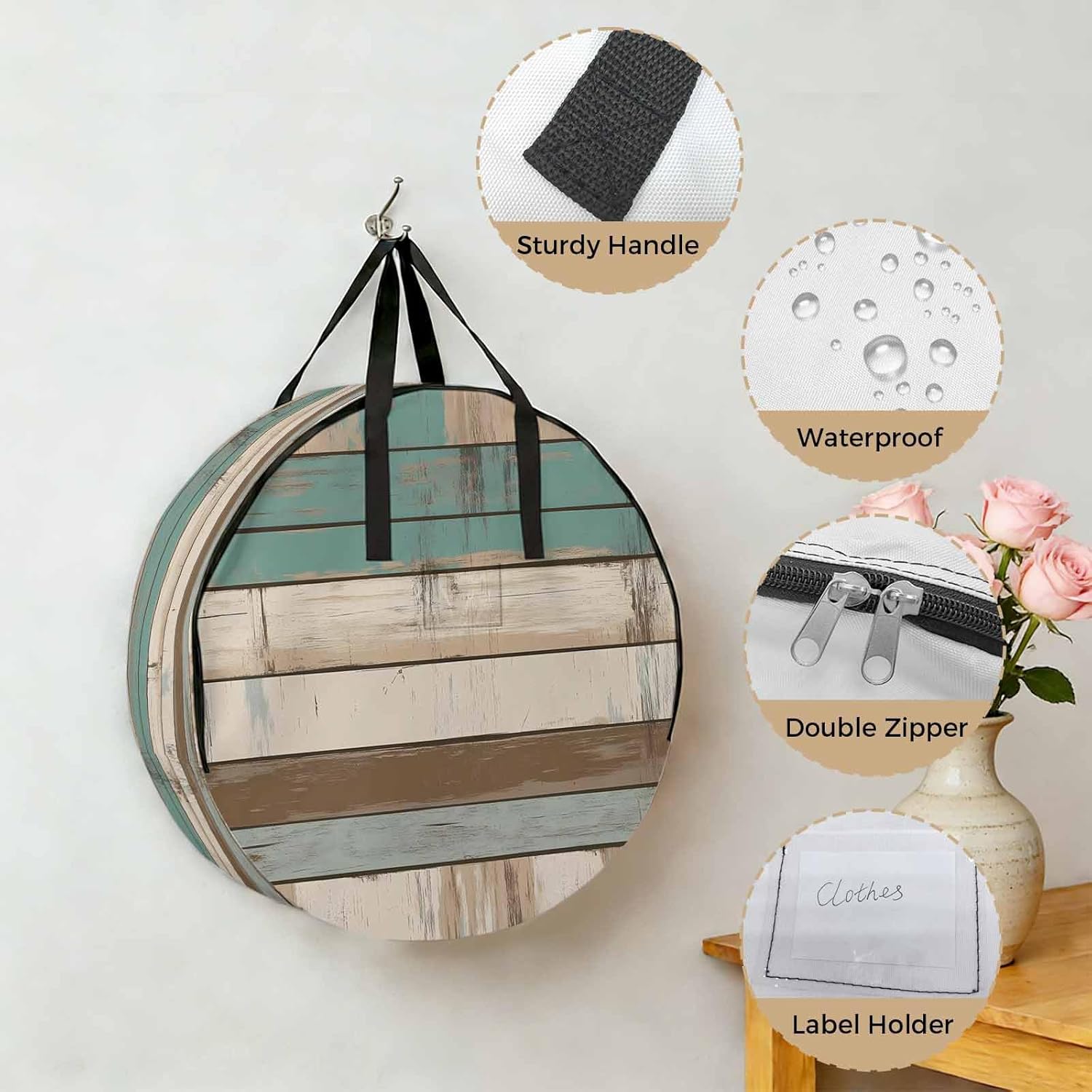 Reclaim Your Closet Space with the Round Storage Solution! Material: polyester Diameters: 24 inch, 30 inch, 36 inch Depth: 7 inches Package Includes: Round Storage Bag One Bag, Endless Possibilities: Whether you are swapping out your summer wardrobe, moving into a new dorm, or packing away holiday decorations, this bag has you covered. The circular design is uniquely suited for: Bedding: Comforters, quilts, sheet sets, and oversized pillows. Clothing: Winter coats, sweaters, and bulky ski gear. Home Decor: Holiday wreaths, garlands, and floral arrangements. Outdoor Gear: Camping blankets, sleeping bags, and beach towels. Dual Zippers: The high quality double zipper design allows the closet organizer to open wide from both sides, making it effortless to load and unload even the bulkiest comforters or wreaths. Reinforced Handles: Sturdy, reinforced handles are securely stitched to provide extra strength and a comfortable grip when carrying heavy loads or pulling the bag from under a bed. Clear Label Pocket: A transparent built-in label holder allows you to quickly identify the contents of each bag without ever having to unzip it, keeping your storage perfectly organized.