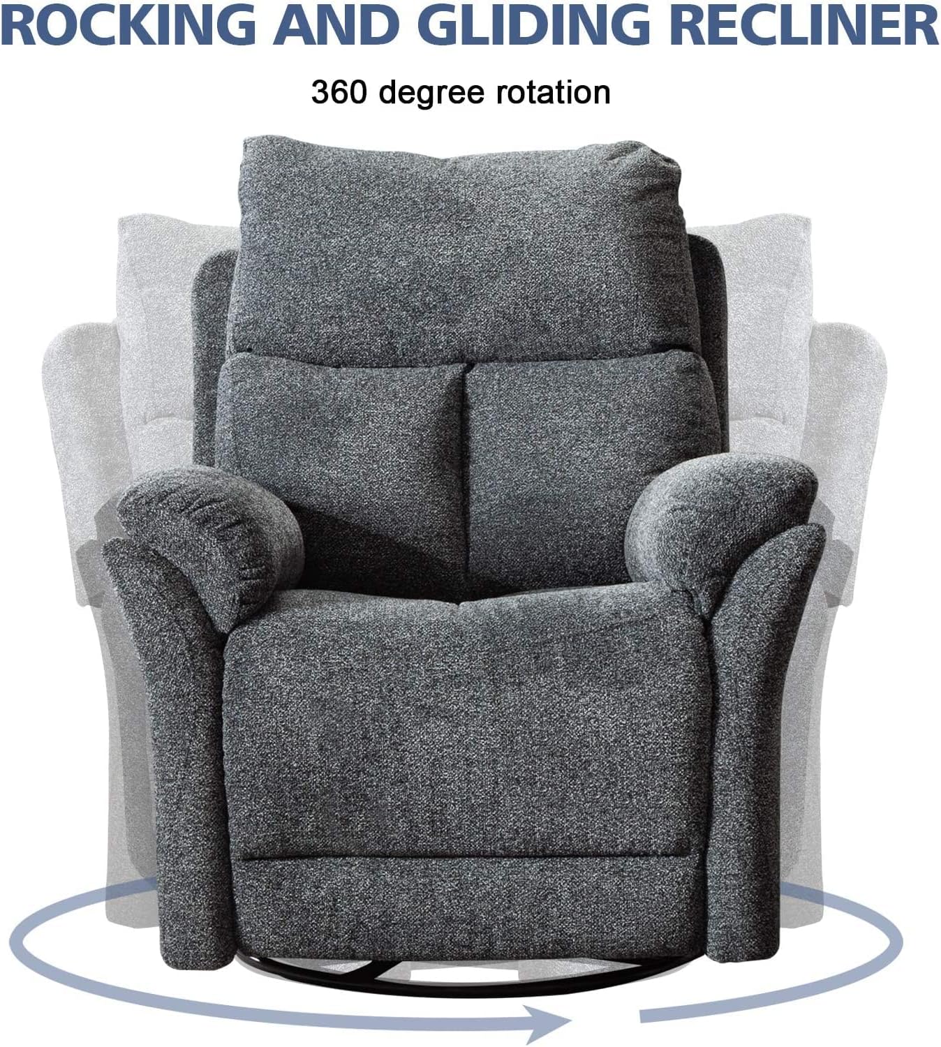 • Modern Design: This manual swivel rocker gliding recliner chair with thickness cushions and armrest, with soft curves, this chair is not only comfortable and soft but is also beautifully designed. NOTE! The backrest will retract as the body moves