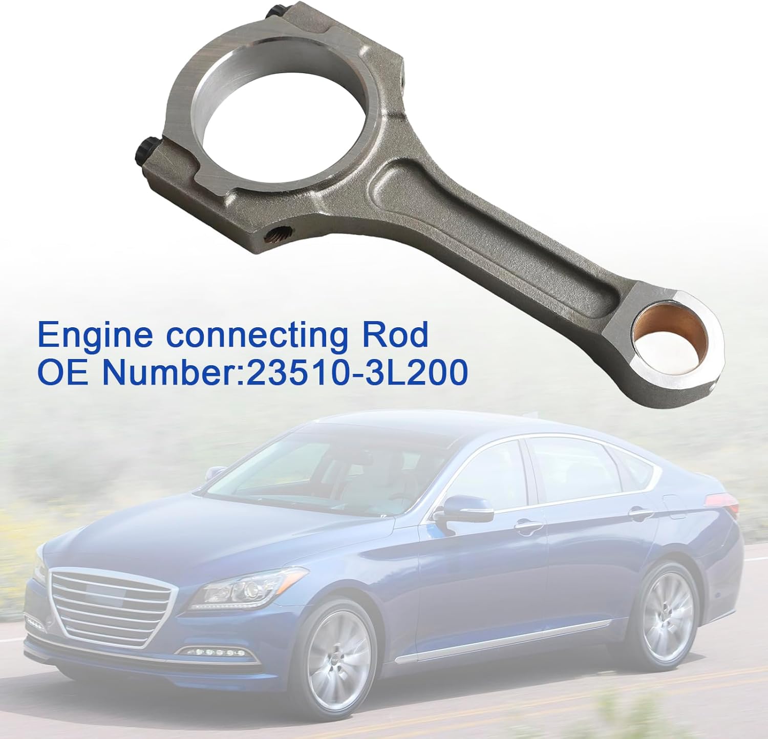 Engine connecting Rod 23510-3L200 For 2012-2016 Hyundai Genesis Coupe 3.8LFEATURES: 1) All parts are hand inspected off the line before packaging and once again by our team before shipment.2) According to the original factory specifications.3) Perfect match for the original car.4) Easy installation.5) Stable characteristics, high reliability.6) Aftermarket Products with Premium Quality.Specifics: Material: MetalType: Engine connecting Rod★Fitment Type: Direct ReplacementQuantity: 1pcsManufacturer Part Number: 23510-3L200Placement on Vehicle: Front★Fitment For: For 2012-2016 For Hyundai Genesis 3.8LFor 2010-2016 For Hyundai Genesis Coupe 3.8LFor 2020-2024 For Hyundai Palisade 3.8LFor 2016-2017 For Kia K900 3.8LFor 2020-2024 For Kia Telluride 3.8LFor 2017-2020 For Genesis G80 3.8L★Package Included: 1x Engine connecting Rod