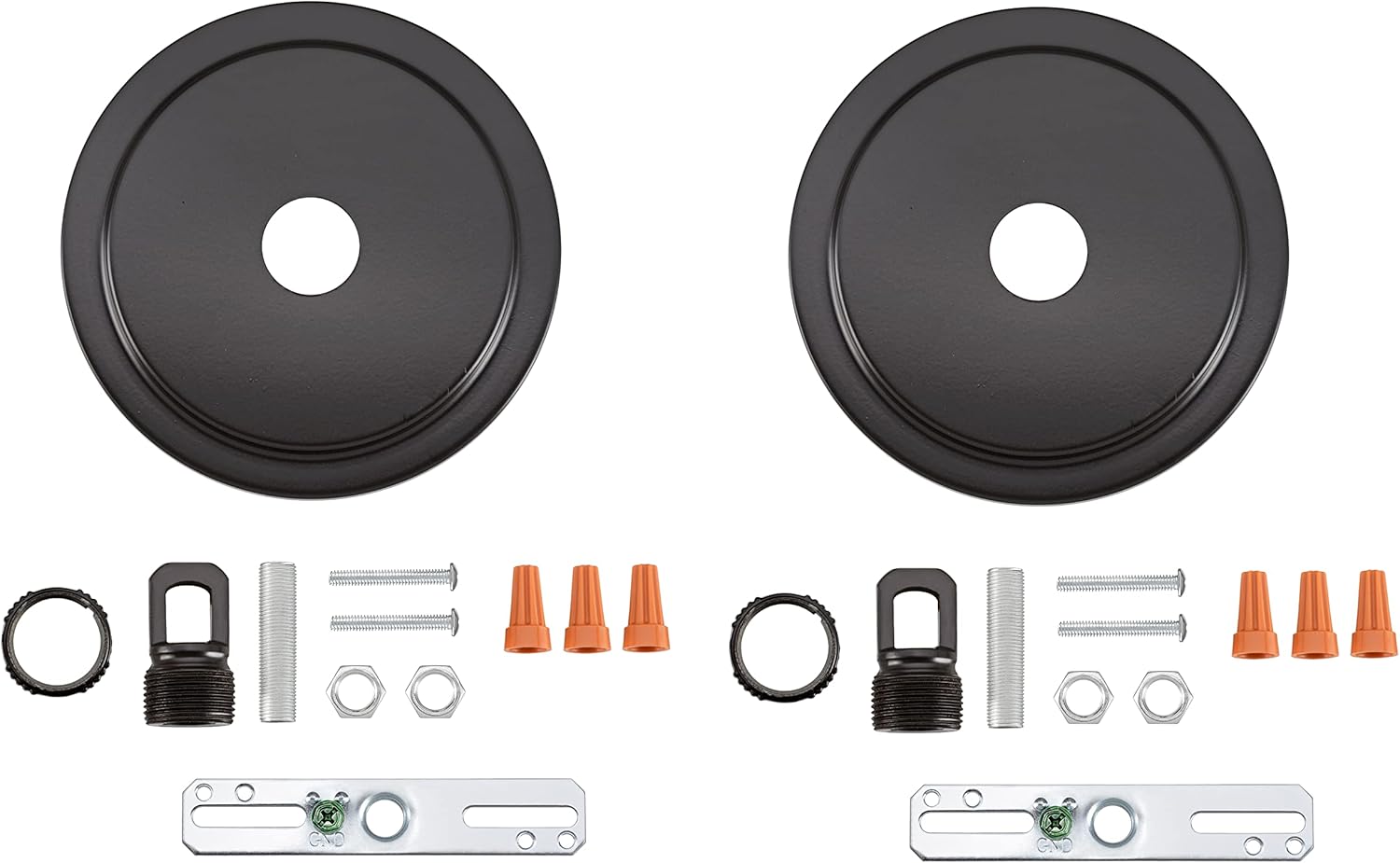 Aspen Creative offers a 2 pack chandelier & light fixture canopy kit in oil rubbed bronze. Canopy dimensions are 5 1/2" diameter x 3/4" height with a 1" center hole. Includes - collar loop & mounting hardware. Suitable to replace or update canopies on a new or existing ceiling fixture or hanging pendant ceiling light and chandeliers.
