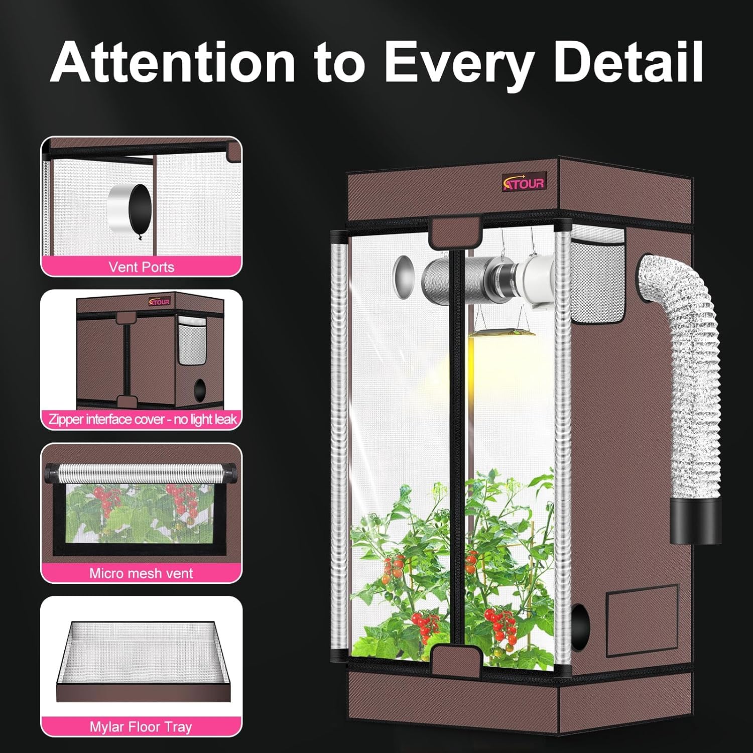 ATOUR Small Grow Tent, 32"x18"x28'' High Reflective Mylar 1680D Hydroponic Grow Tents, Waterproof Grow Tent with Double Cleart Observation Door and Floor Tray, for Indoor Plant Growing