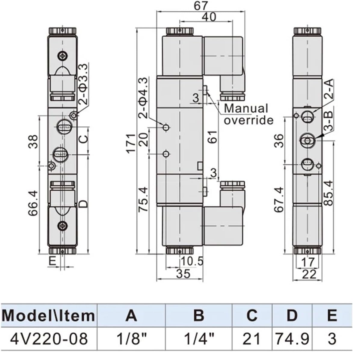 Type : ValvesModel Number : 4V220-08Standard V : DC24V, DC12V, AC220V, AC110V, AC24VV Range : AD: ±15% : ±10%Power Consumption : : 6.0VA : 4.8W