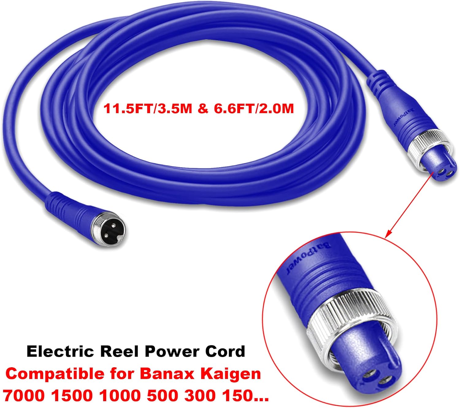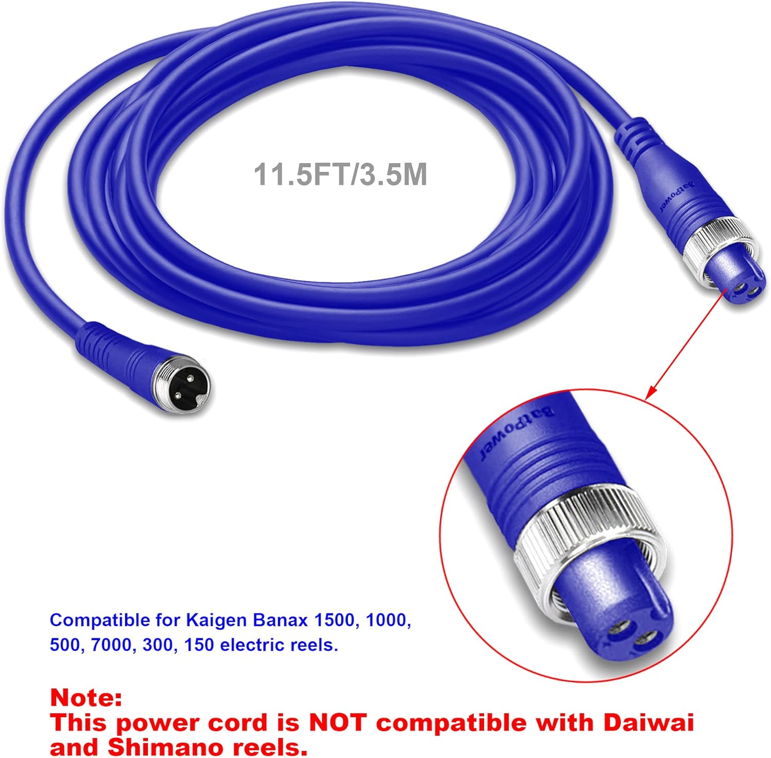 BatPower ProK BP-FKC35A 11.5FT/3.5M Power Cable Air Cord compatible for Banax Kaigen electric fishing reels: Compatible for Banax Kaigen 7000, 7000CP, 7000C, 7000CL, 7000BM, 7000HM, 7000PM, 7000KM, 7000SV, 7000SVO and BANAX TIMAX 7000B Electric Reels and more. Compatible for Banax Kaigen 1000, 1500, 1500TM Electric Reels and more. Compatible for Banax Kaigen 500, 500S, 500TM, 500XP Electric Reels and more. Compatible for Banax Kaigen 300, 300C Electric Reels and more. Compatible for Banax Kaigen 150, 150B, 150G Electric Reels and more. NOTES: This cable BP-FKC35A is NOT Compatible for Daiwa and Shimano electric reels. This cable BP-FKC35A is NOT Compatible for Miya Epoch electric reels. This cable BP-FKC35A is NOT Compatible for BatPower ProF and ProS electric fishing reel Batteries.