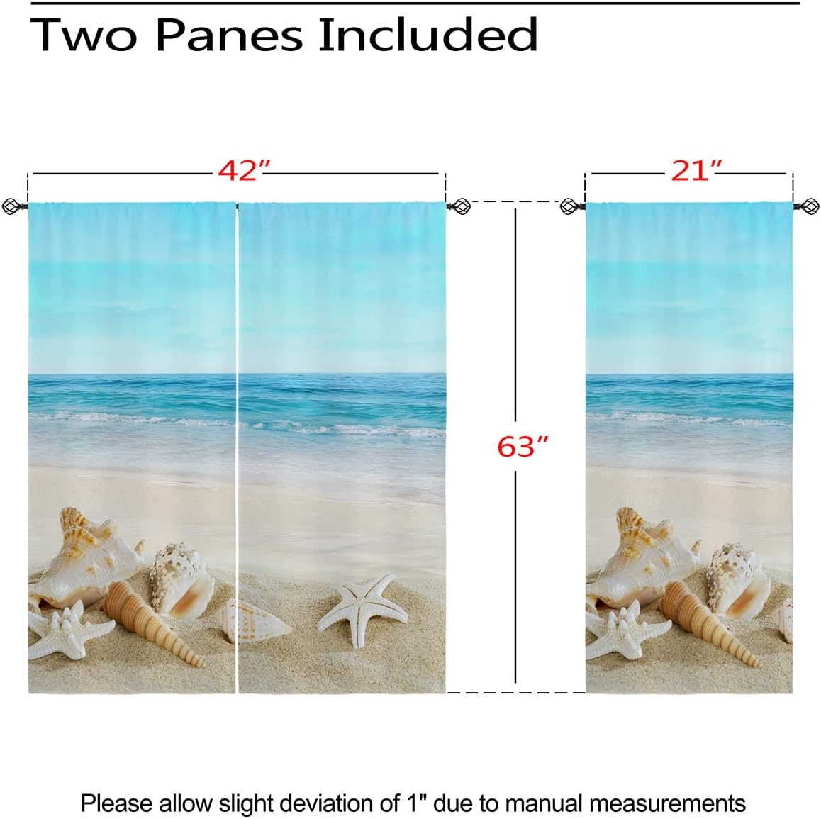 These print curtains are perfect for Living room, bedroom, kids room, kitchen, yard, patio, parlor, sliding door with Beach,Ocean Sea Coastal Seashell Conch Tropical pattern.- Unique design:· Save energy costs by insulating against heat and cold.· Reduce noises from busy streets and high-traffic areas.· Protect furniture from sun damage and fading.· Provides complete privacy when needed· Perfect for any bedroom, office kids room and living room.- Package Included:· Blackout window curtains 2 Pcs set ( two panels).- Material:· Our Blackout Curtain Liners are crafted from a durable soft and thick triple weaved blackout fabric which can block out sunlight and UV rays. The darker color of the fabric, the more light it can block.- Easy Care Instructions:· Machine washable in cold water· Do not bleach.· tumble dry on low· low temperature ironing- Notes:· For your curtains to be more perfect, please choose a size 5-10 Inch larger than the actual window width.· here may be slight differences in colors on different displays. If you have any questions about the product, please feel free to contact us.