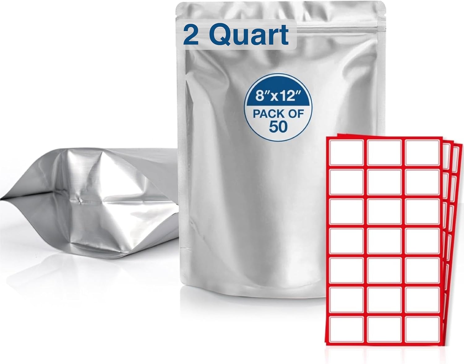 | Included Components | 50x Oxygen Absorbers (500cc), Labels |