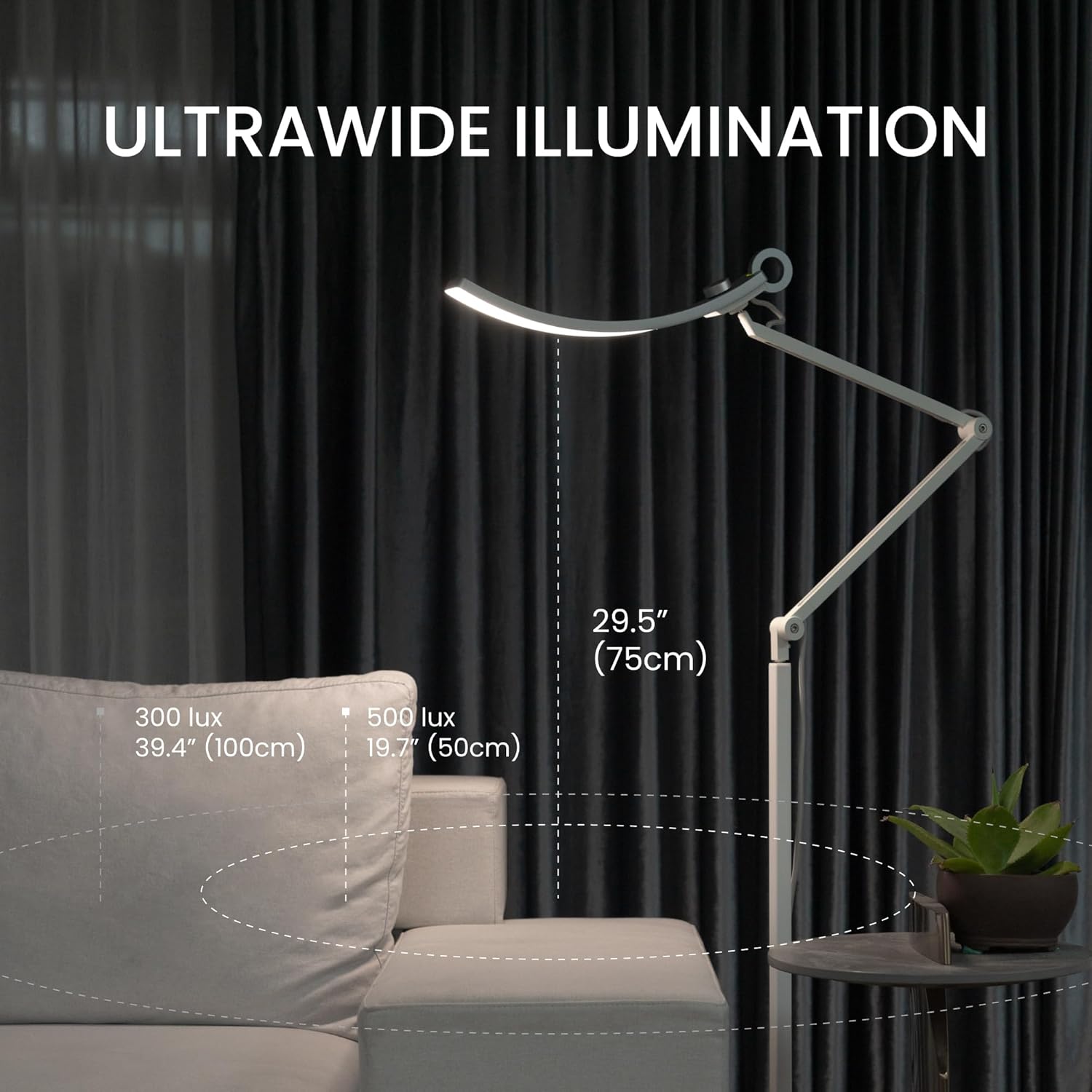 | Installation Type | FreestandingUltrawide and bright illumination, 2 smart modes, 13 color choices and 23 levels of brightness, Adjustable arm |