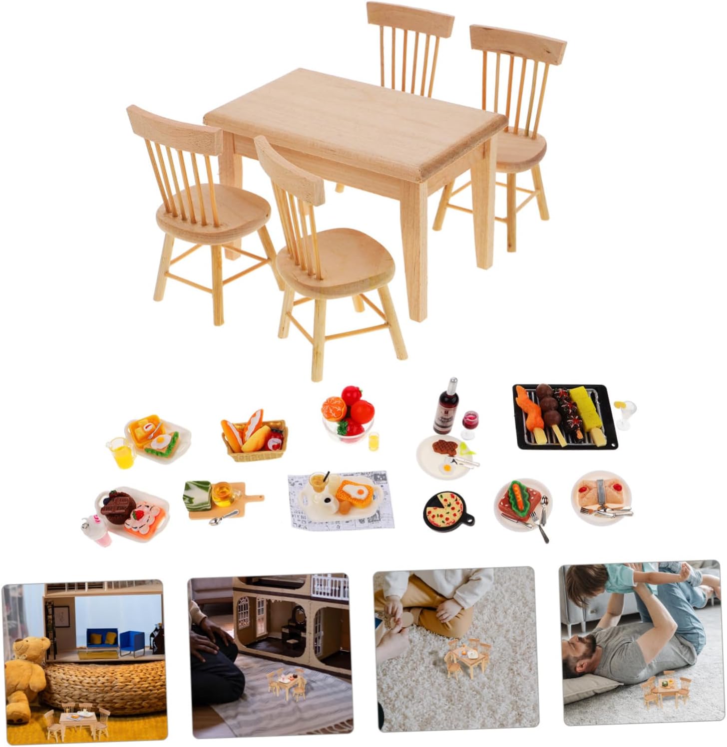BESPORTBLE 1set Miniature Furniture Doll House Dining Table Chairs Realistic Food Props for Kitchen Playset for Decor Photography for Miniature Scenes Pretend Play