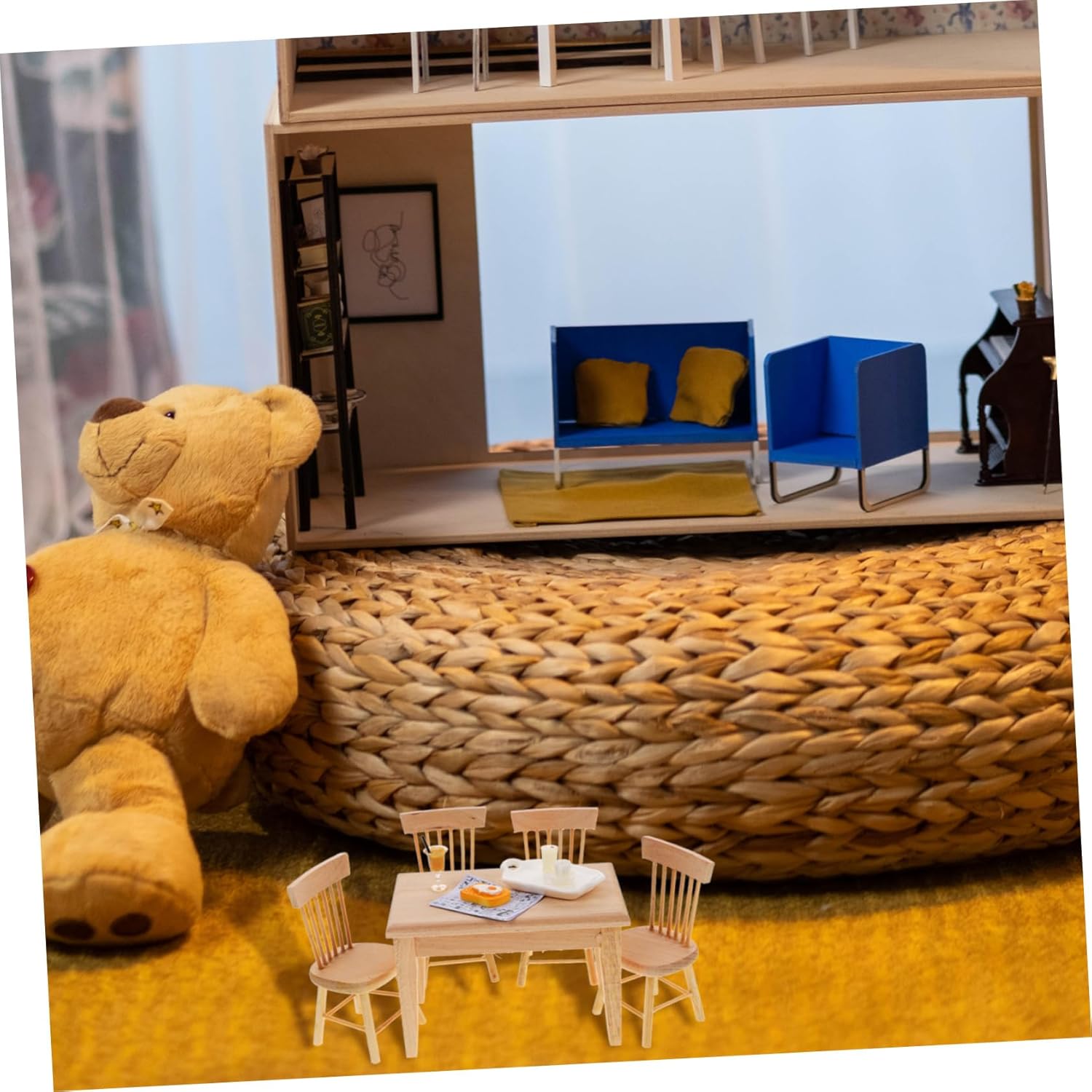 • Doll house mini chairs:miniature table and chair with food are easy and convenient to use, and easy to store when the ornament is not in use,Miniature Furniture